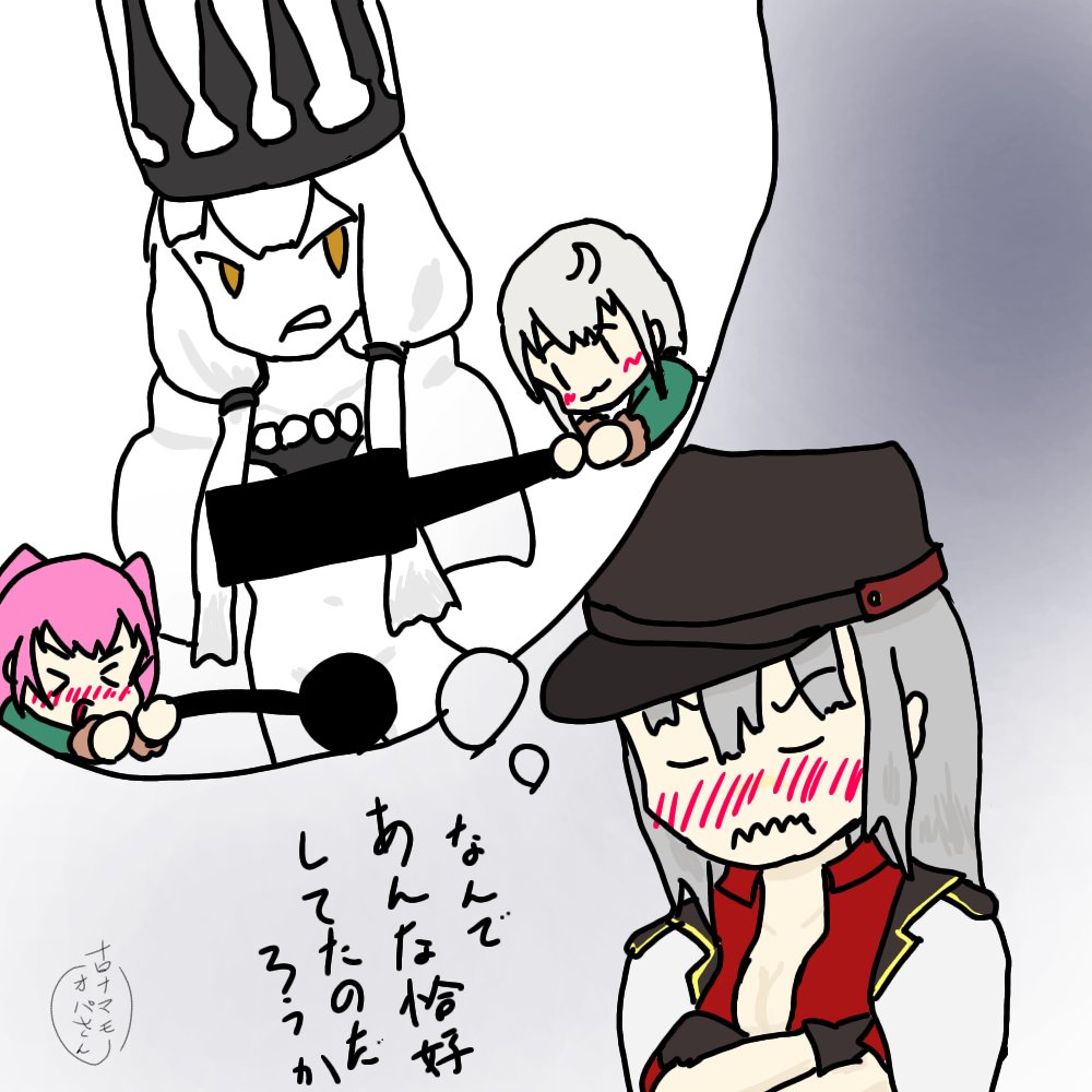 貴様、気安いな。銃殺刑にしてやってもいいのだぞ。 まあいい、文化交流も大切か。 次はないぞ、覚えておけ。 膝乗せは文化なのだ~( ˘ω˘ )エヘヘ ★連続1782日目 #艦これ版深夜の真剣お絵描き60分一本勝負 #艦これ版真剣お絵描き60分一本勝負_20230502 #ガングート #艦隊これくしょん #艦これ