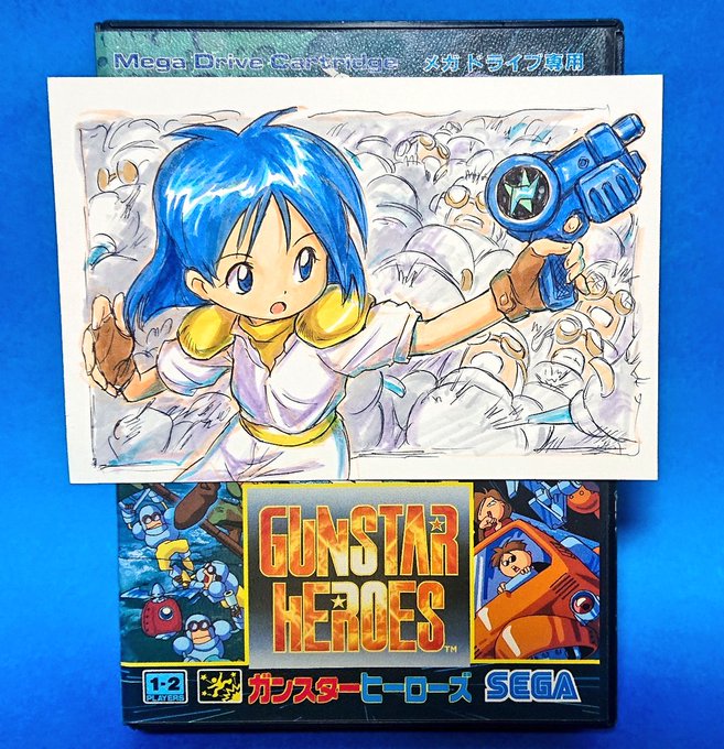 ガンスターヒーローズのパッケージを作ってる気持ちで頑張って描きましたw😆 #ガンスターヒーローズ #GUNSTAR_HEROES #TREASURE #レトロコンシューマー愛好会イラスト部 #SEGA