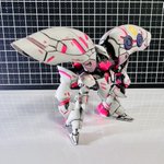 #ガンダムアーティファクト #ガンプラ #キュベレイ #ガンプラ好きと繋がりたい #ガンプラの画像貼るとRTされると聞いて 塗装はグレーサフ→ガンクローム→クールホワイト→ダイアモンドシルバー→スーパークリアⅢ ピンクの部分は蛍光ピンク+ガンクロームです。