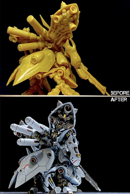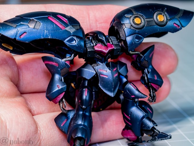 #ガンダムアーティファクト #キュベレイ 完成しました✨ ポーズ変更、ファンネルエフェクトなど改修して筆塗りで塗装しました😊 リプ欄に画像貼ります。 よろしければ見てってください🙇 🔽続く