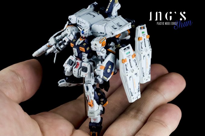 #ガンダムアーティファクト 【 フルアーマーガンダム type ν 】 完成です! 人生初手のひらサイズ、プラ板工作・筋彫り・ミキシングと頑張りました☺️✨ エアーブラシベースで塗装したのでマスキングが難儀すぎました🤣 自分なりに頑張ったので、良かったら見てやってください🤤✨