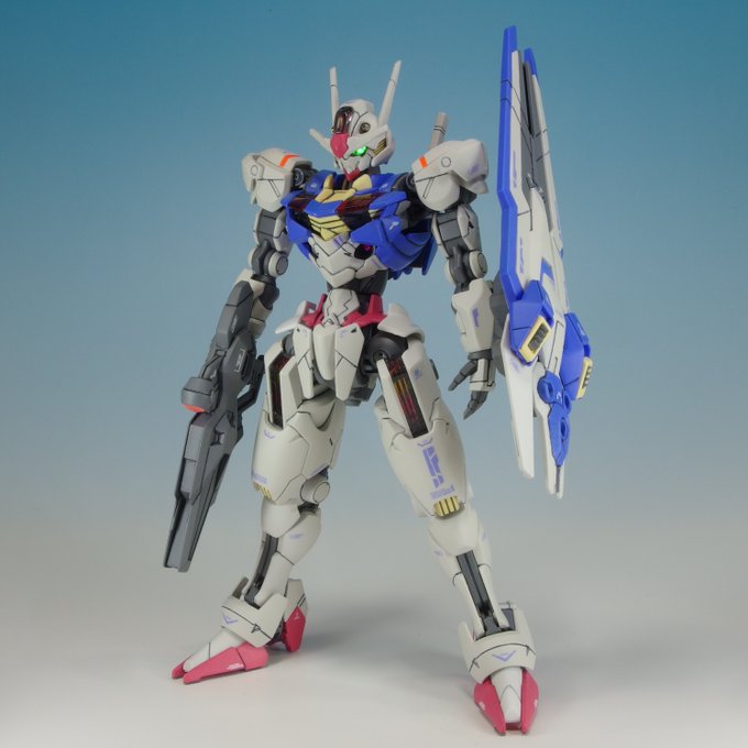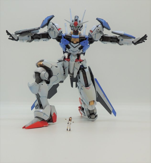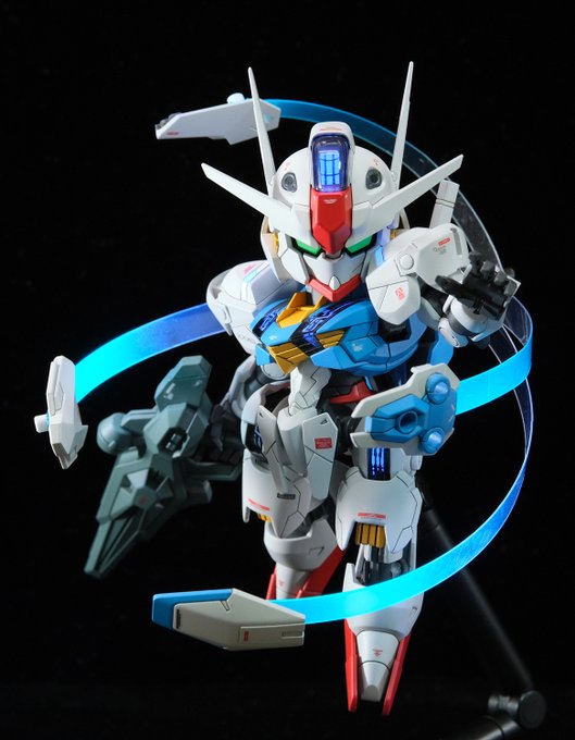 私には工作技量があまりないので カラーリングとポージングで 機体の魅力を引き出すことを意識しています。 エアリアルは仲間を想っての カラーリング🎨 このポージングは想像の中では良きパイロットであって欲しい証でもあるのです🌟 機体名 エアリアルガール #ガンダムエアリアル #ガンプラ