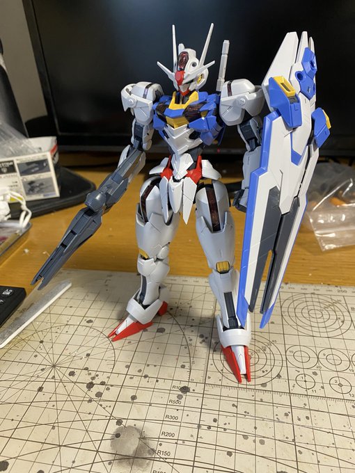 (1/3) #ガンダムエアリアル #改修型 完成 サーベルエフェクト以外は新規パーツで、バックパックを中心に前エアリアルからボリュームが増えてる印象 ビームライフルも大型になってすこーし手首が負けがちかな…? (リプ続↓) #ガンプラ #ガンプラの画像貼るとRTされると聞いて #水星の魔女 #G_Witch