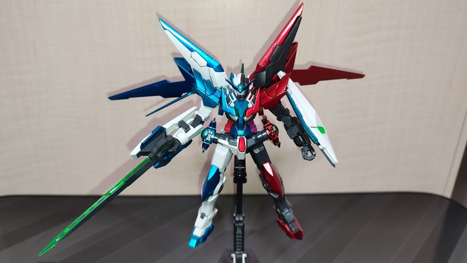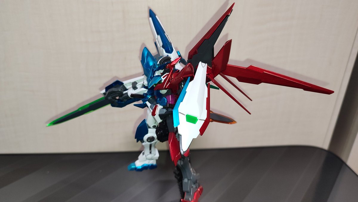 大好きな二体の期待をニコイチにしてみました。 #アメイジングエクシア #ガンダムエクシアダークマター ↓ アメイジングエクシアダークマターがやっと完成。武器は無駄に3本あります😆意外に満足😁 #ガンプラ初心者 #ガンプラの画像貼るとRTされると聞いて #ガンプラ好きと繋がりたい