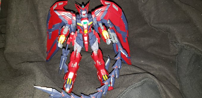 ガンダムエピオン完成~♪ 赤茶外装は下地に緑を入れた グレー塗装その後に 赤クリア→フワッと銀→緑クリア で塗装~ 濃い青は赤キャンディーメタリックの上に青クリア~♪ #ガンプラ #ガンプラ好きな人と繋がりたい #ガンプラの画像貼るとRTされると聞いて #ガンダムW #ガンダムエピオン