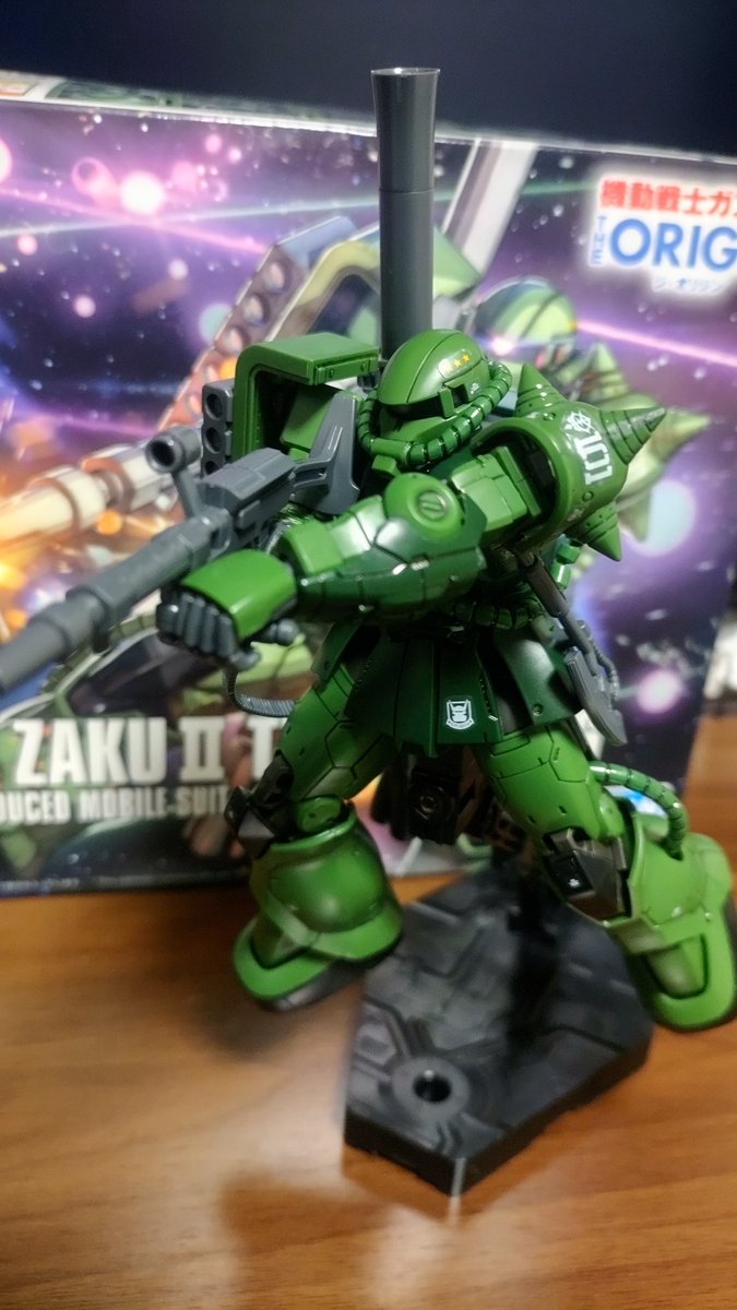 やっと完成ー オリジンザクは色も渋いし、ディテールもいいし、ええなぁ。。。(しみじみ) #ガンプラ #ガンプラ好きと繋がりたい #ガンプラの画像を貼るとRTされると聞いて #ガンダムオリジン #ザクCR6型