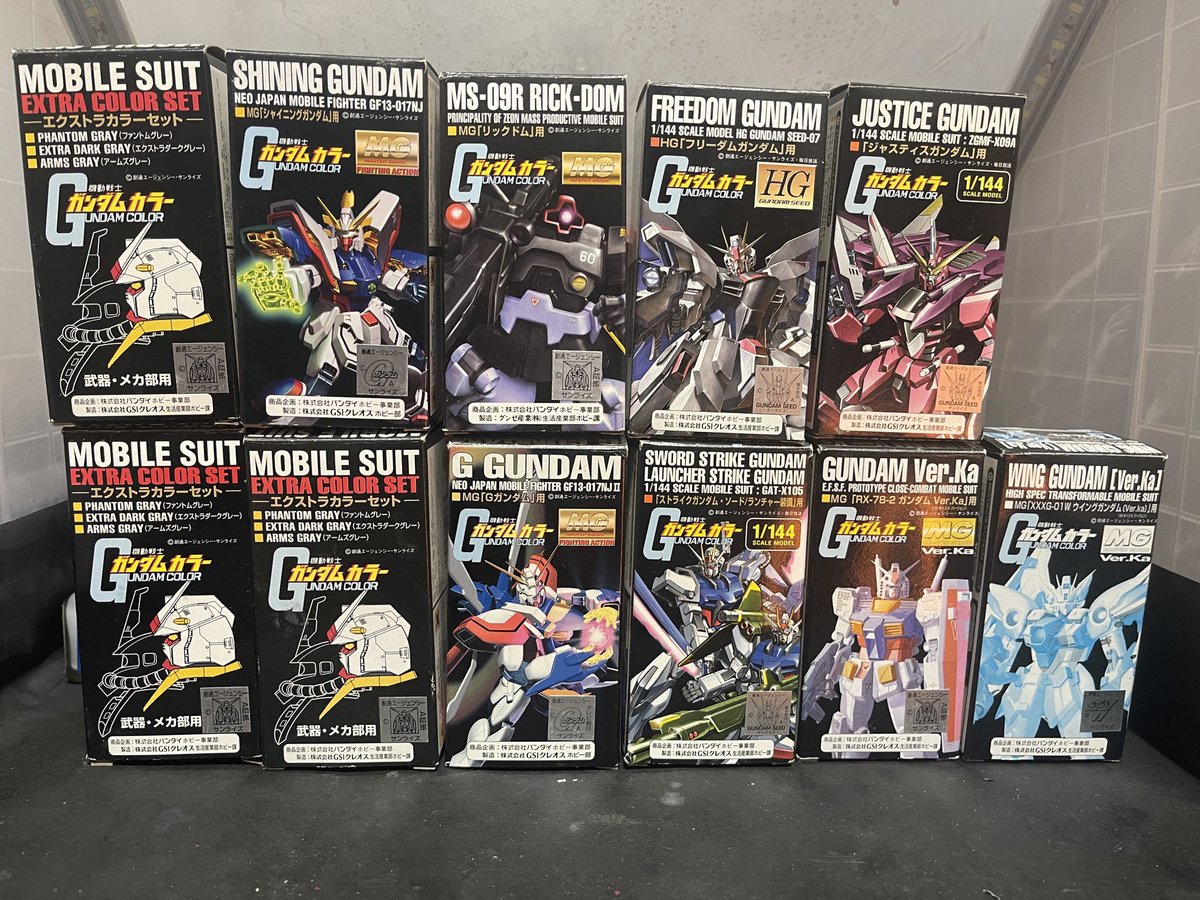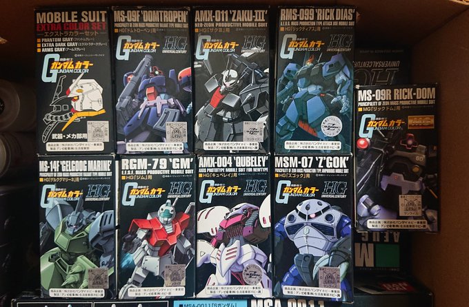 かなり色褪せてるのも出てきたけど今の若い人は、コレ知らないのかな? 今は単品でクレオスの買えるもんね〜普通に ガンダムカラー #ガンプラ好きと繋がりたい #ガンプラの画像貼るとRTされると聞いて #ガンプラ #ガンダムカラー
