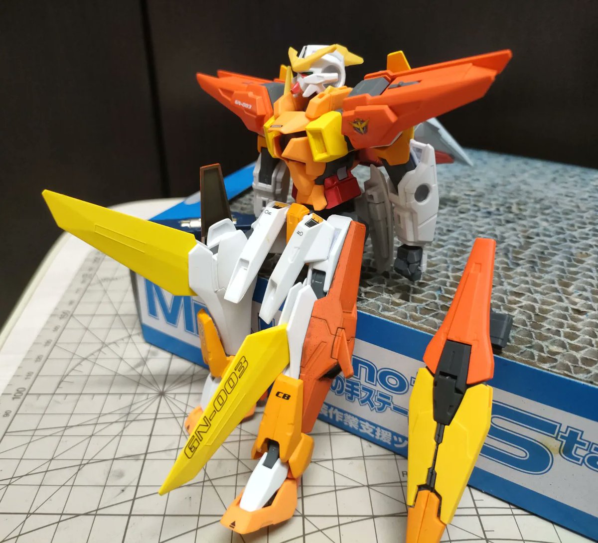 ガンダムキュリオス完成! キャンディオレンジは新鮮でよかった さあ、ソレスタルビーイング4体きれいに並べるぞー #ガンプラ #ガンプラの画像貼るとRTされると聞いて #ガンダムキュリオス #ガンダム00