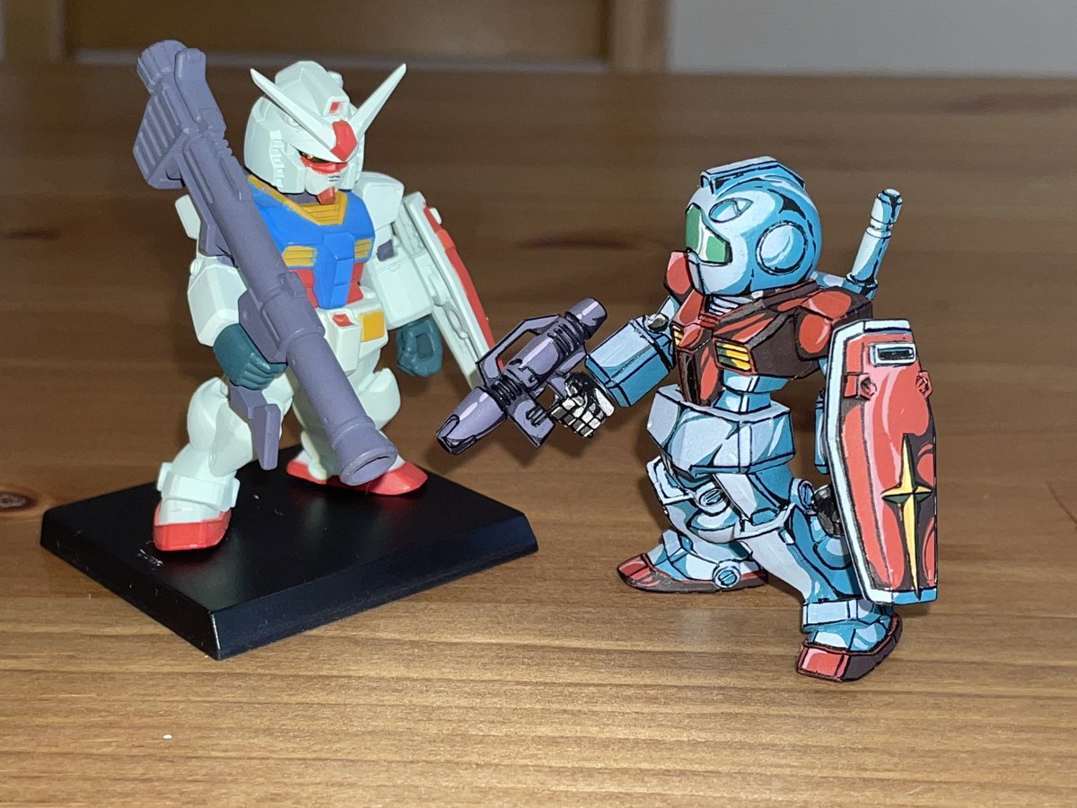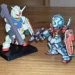前回反響の多かったジムのイラスト風塗装、調子に乗って量産してしまいました。量産型なのでたくさん作っても構いませんよね🌝 ガンダムも塗っています。 #ガンダムコンバージ #イラスト風模型 #アニメ塗り