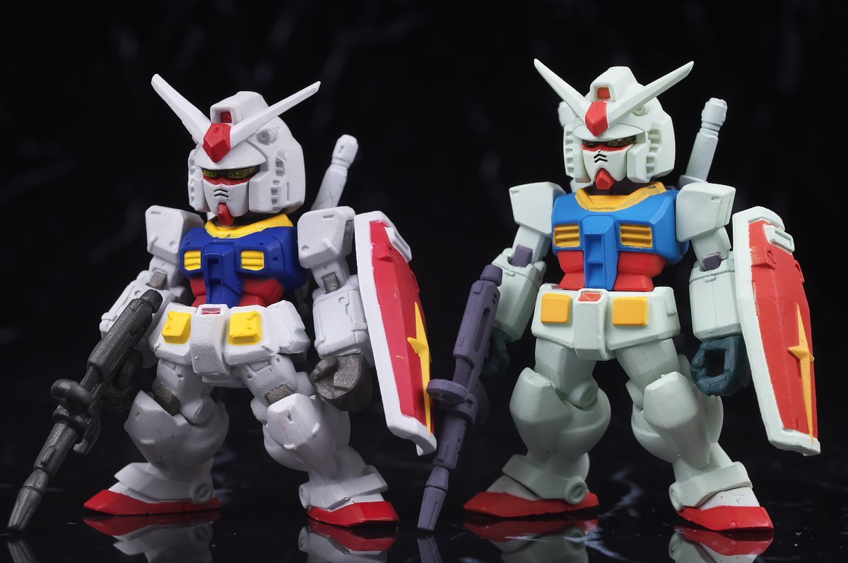 前回反響の多かったジムのイラスト風塗装、調子に乗って量産してしまいました。量産型なのでたくさん作っても構いませんよね🌝 ガンダムも塗っています。 #ガンダムコンバージ #イラスト風模型 #アニメ塗り