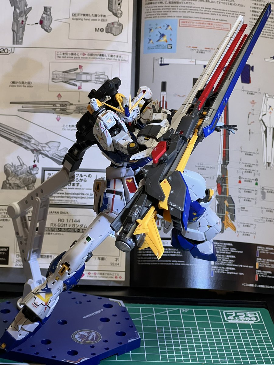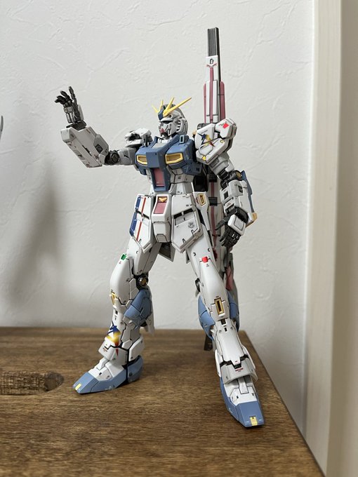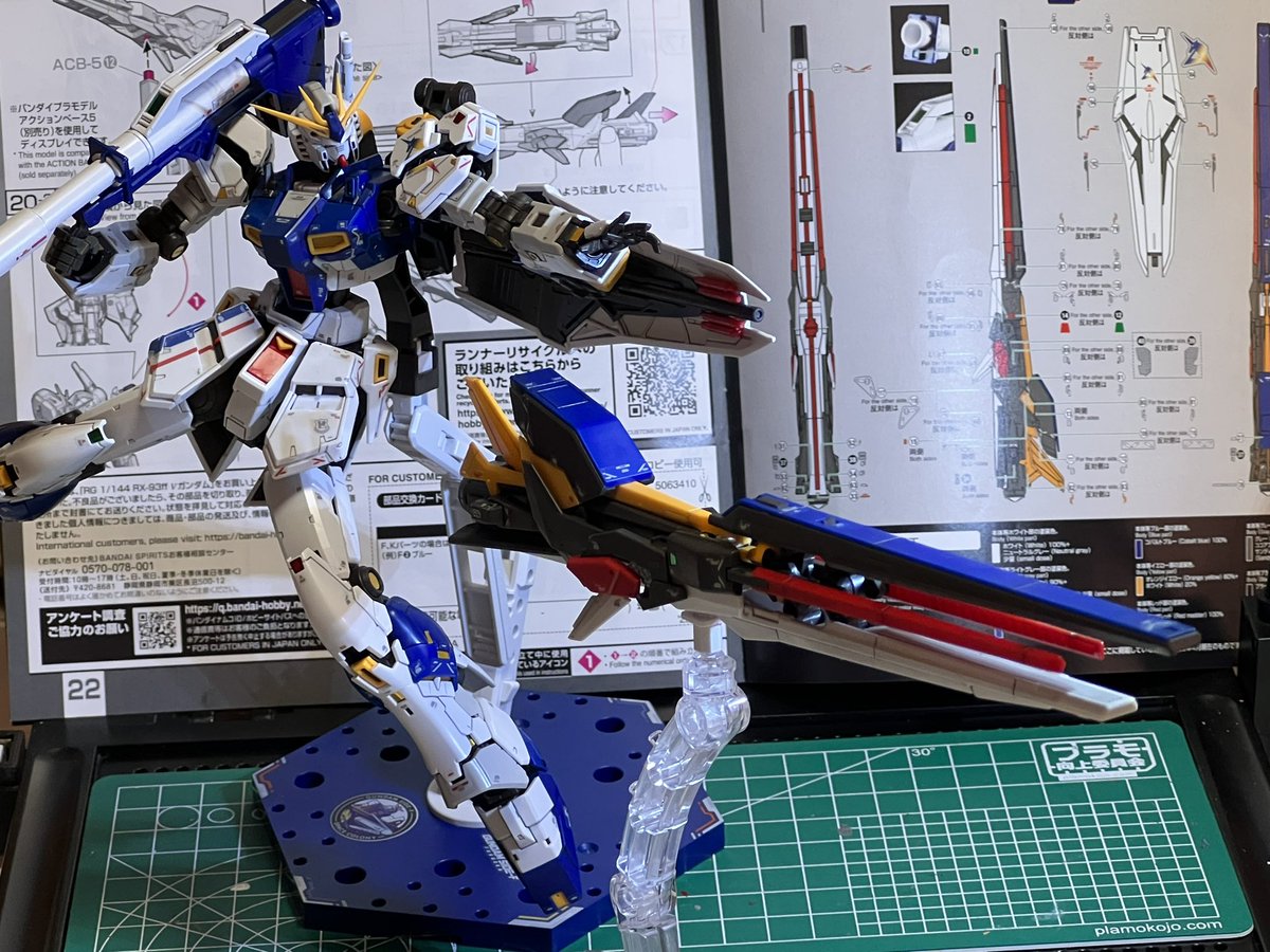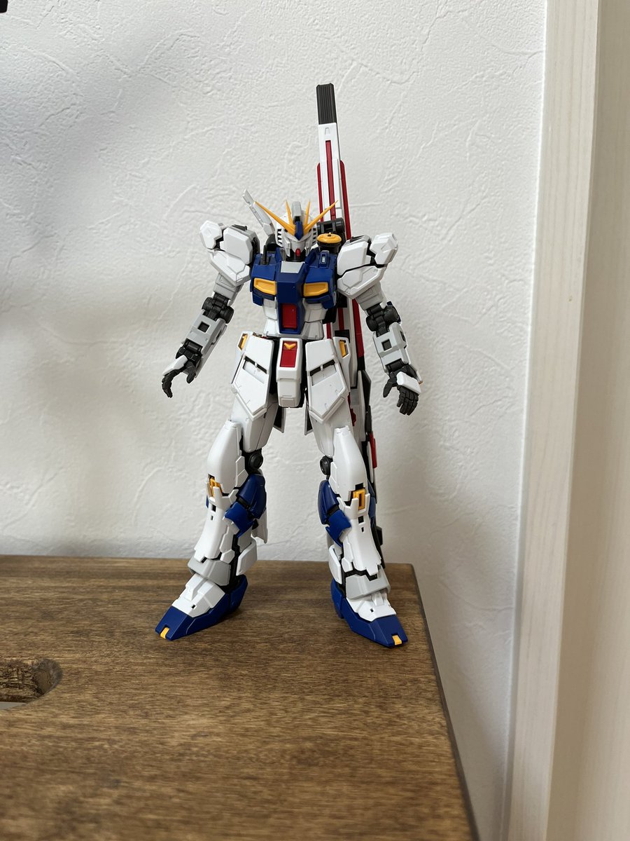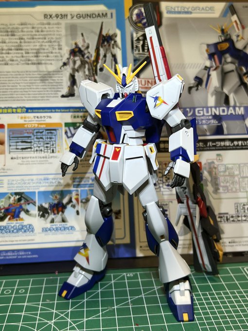 RG RX-93ff νガンダム 完成!! 立像そのままのスタイル! 久々にデカール貼りを取説通りに貼っていきました😆 取説のデカール貼り方図が細かくて目が疲れました😅 アクションもさせてみます! #ガンプラ好きと繋がりたい #ガンプラの画像貼るとRTされると聞いて #ガンダムサイドF #逆襲のシャア