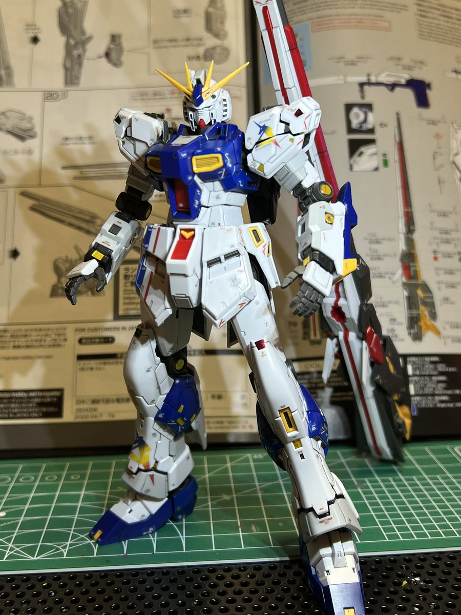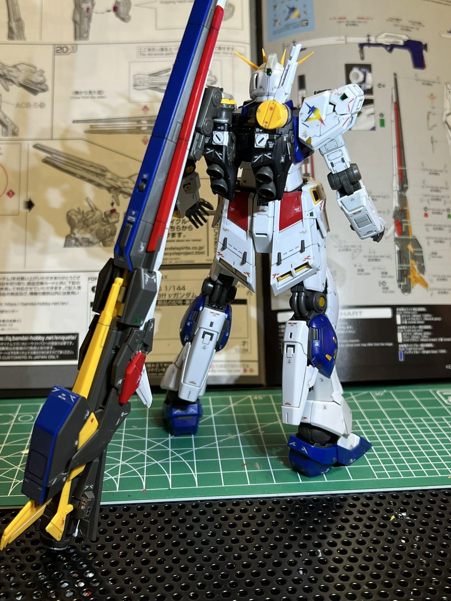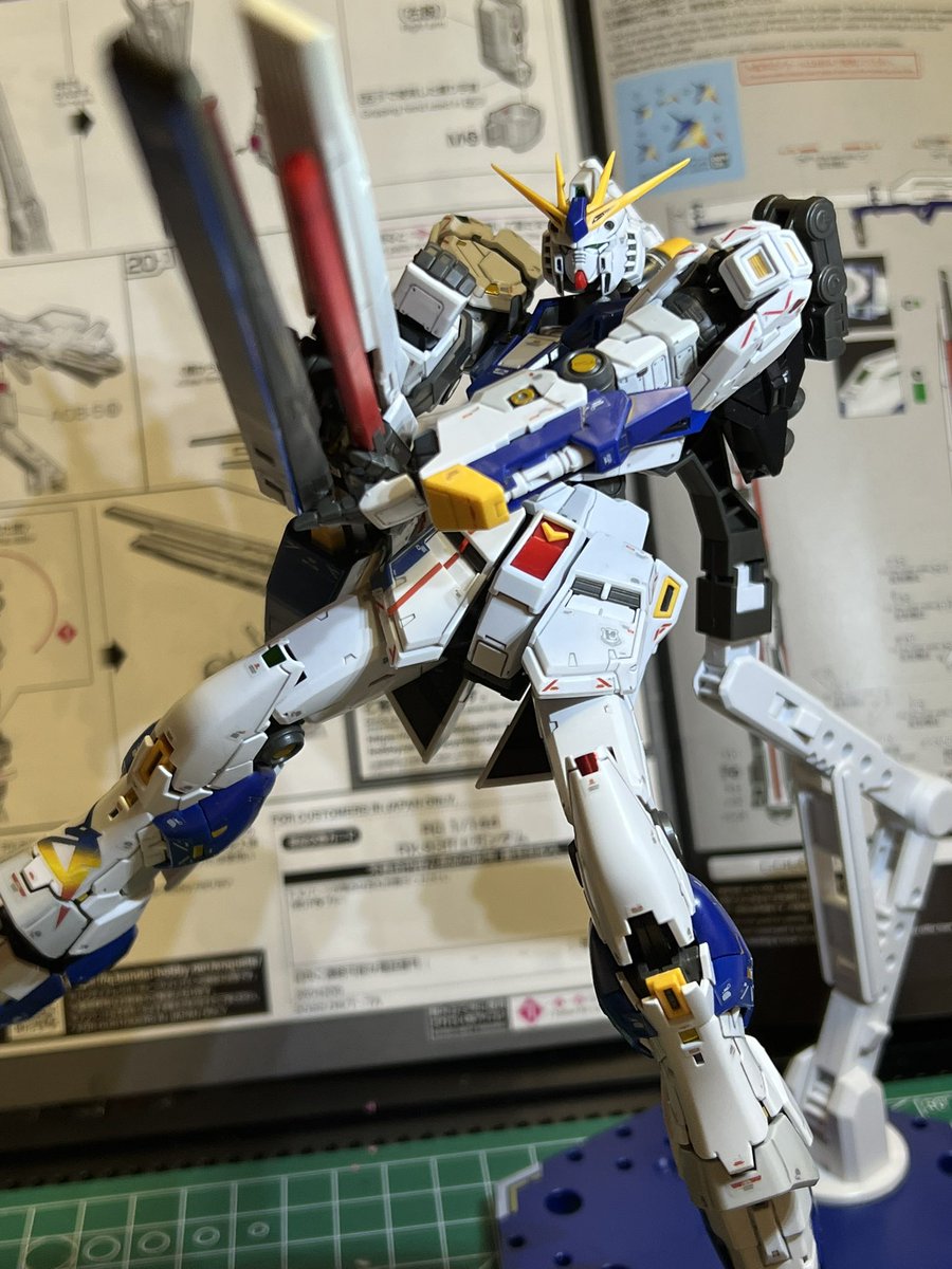 RG RX-93ff νガンダム 完成!! 立像そのままのスタイル! 久々にデカール貼りを取説通りに貼っていきました😆 取説のデカール貼り方図が細かくて目が疲れました😅 アクションもさせてみます! #ガンプラ好きと繋がりたい #ガンプラの画像貼るとRTされると聞いて #ガンダムサイドF #逆襲のシャア