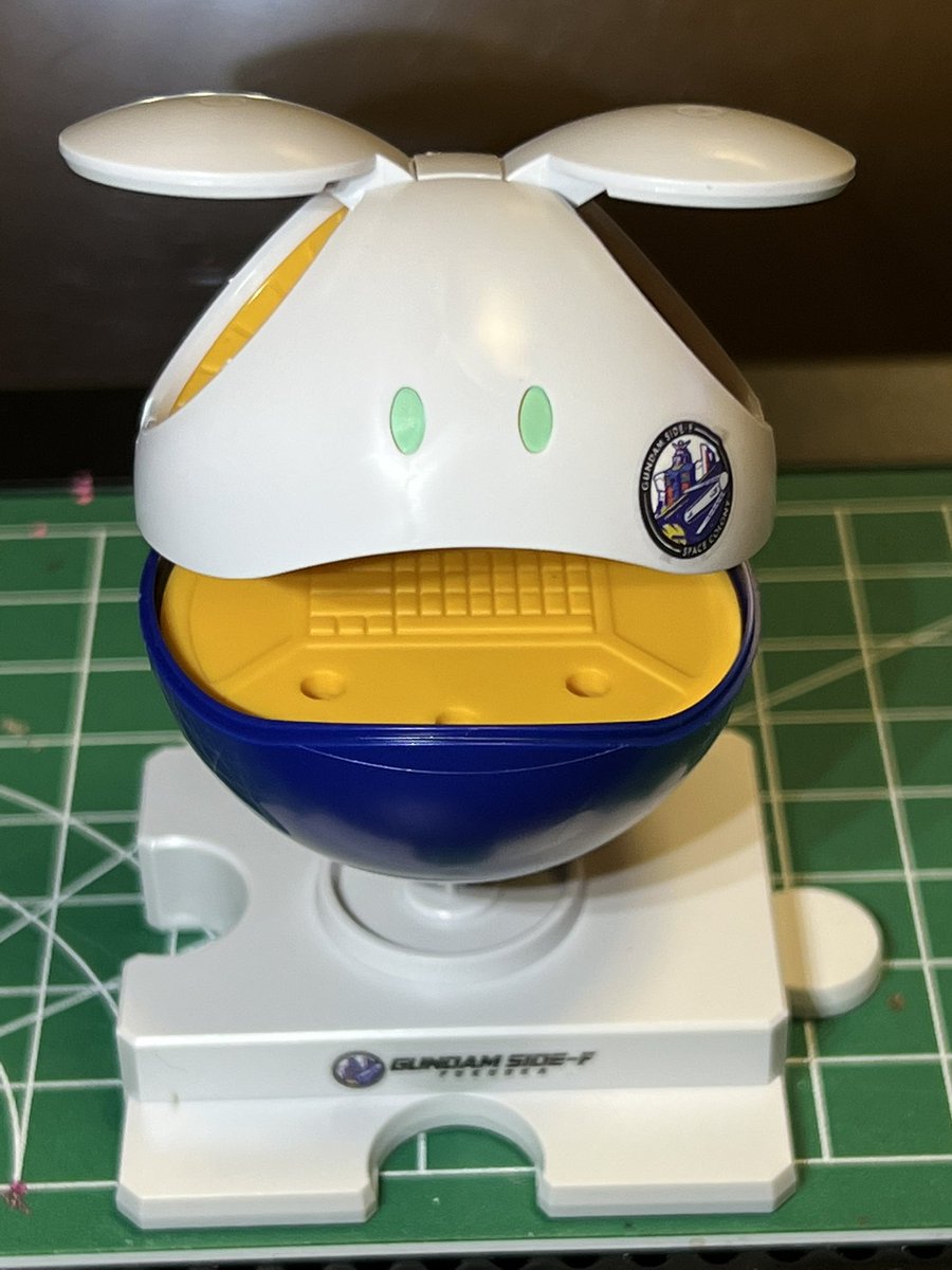 #ハロプラ #ガンダムサイドF カラー完成✨ 実は口が開閉するタイプの初めて組みましたが開いた方が可愛いですね😁 余ったシールは口の中のモニター?面に貼りました😆 #ガンプラ好きと繋がりたい #ガンプラの画像貼るとRTされると聞いて