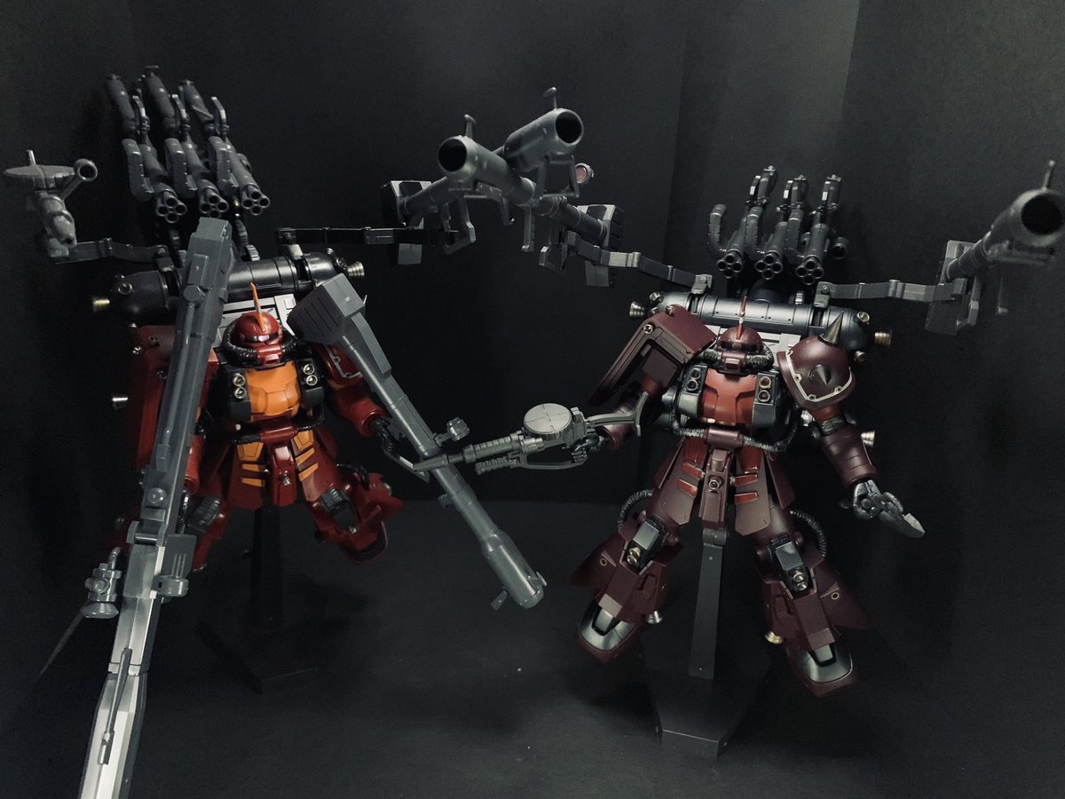 今週の模活は HGザク1 サンボル版 細かい所の塗装、デカール貼って 武器盛り盛りのポージングで遊んでました。 どう汚していこうかな? #ガンプラはどんな自由な発想で作ってもいいんだ #ガンプラの画像を貼るとRTされると聞いて #ガンダムサンダーボルト #ザク