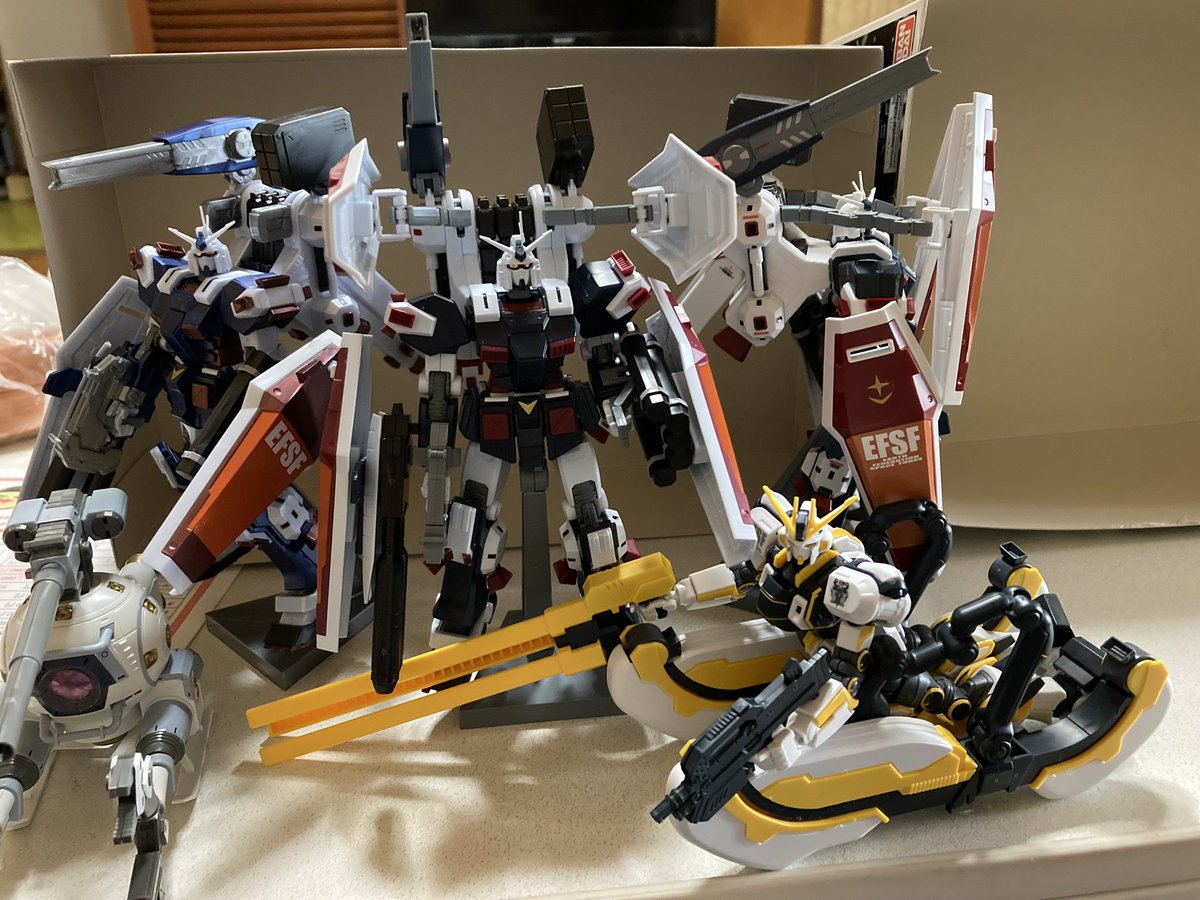 サンダーボルト10周年記念特装版フルアーマーガンダム&サイコザク完成④🙏 ”死闘“ パチ組みとはいえ一日でこのボリュームのキット連続組みはかなり疲れたが、色良すぎてゾワゾワする😍 #ガンプラ #ガンプラ好きと繋がりたい #ガンプラの画像貼るとRTされると聞いて #ガンダムサンダーボルト