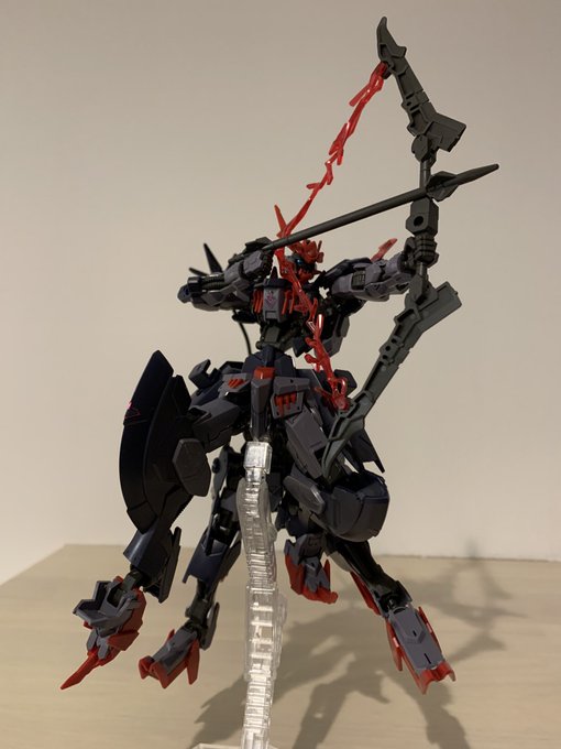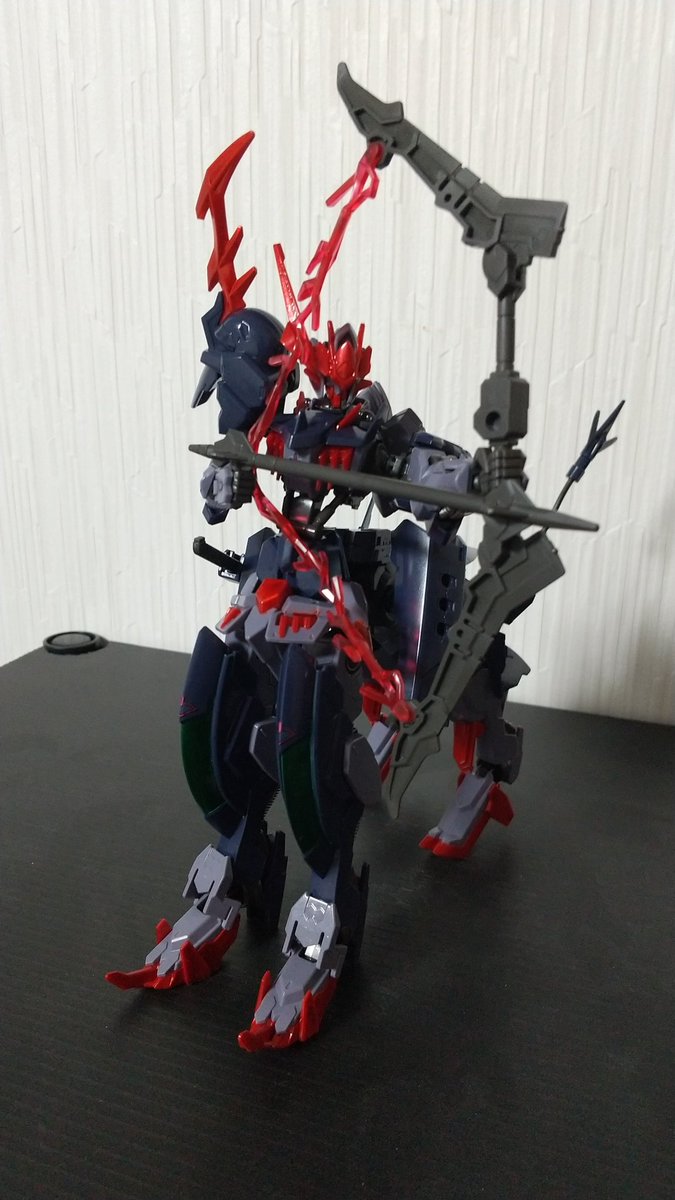 #ガンダムバルバタウロス 完成〜 四脚だから安定はするけど、ガンダムフレームの胴体と腰部を繋げるBJは若干緩め(相変わらず)だから、それで少しグラつくことも これ弓矢の矢はどこから取り出すんだろね?(リプ続 #ガンプラ #ガンプラ好きと繋がりたい #ガンプラの画像を貼るとRTされると聞いて #g_bb