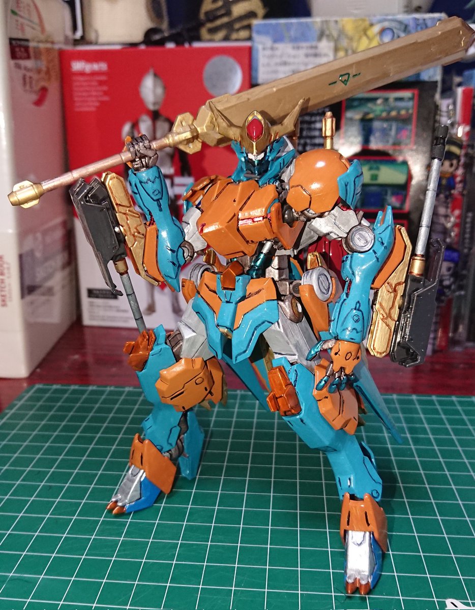 【猛暑の鬼帝軍開発工廠】 鉄血オプションセット「鬼帝陛下 強化パッチ」完成! 腕部200㎜砲にツインメイス、ロングライフルに大型レールガン。 バルバトス(自分専用機)の武装も充実してきたぞい。 #ガンプラ #ガンプラ好きと繋がりたい #ガンダムバルバトス (十六夜)