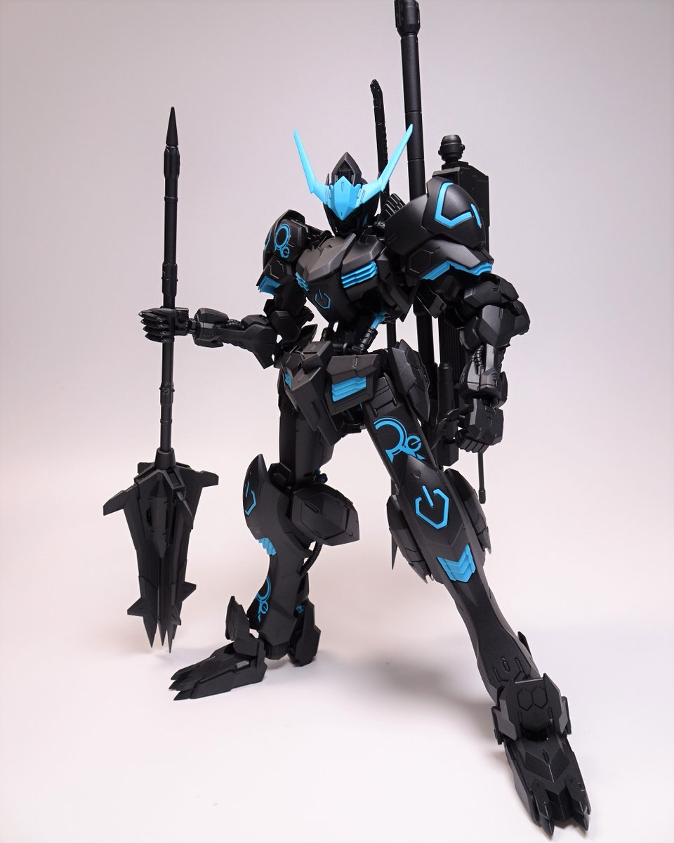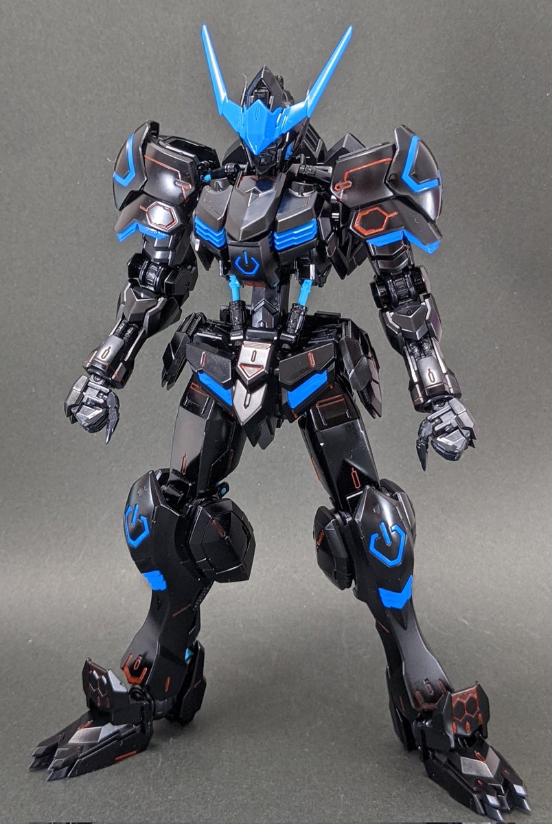 MGバルバトス リサーキュレーションカラー/ネオンブルー 部分塗装完成しました😍 ブルーの部分とモールド部分に蛍光塗料でスミ入れしました😍 雨が多くて、青空塗装が出来なくて一ヶ月かかってしまいました😅 続きます😀 #ガンプラの画像貼るとRTされると聞いて #ガンダムバルバトス