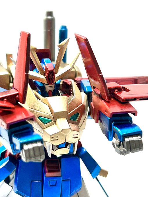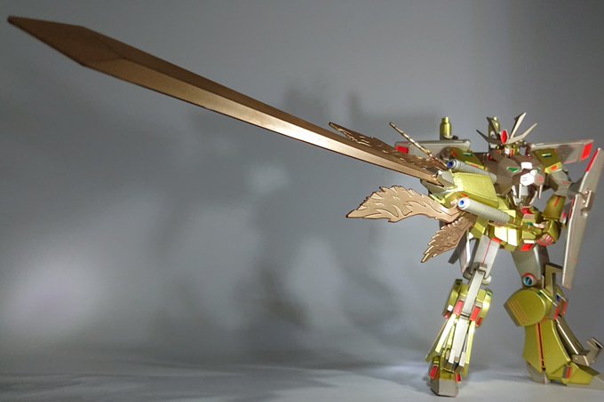 #うみんちゅ杯2022秋 HGBFガンダムトライオン3で参加させていただきます。 ハイパーモード的にゴールドにしようと思ってたら、めっちゃゴルドランになりました(笑)勇者パースで撮影難しい。 #ガンプラ #ガンダムビルドファイターズトライ