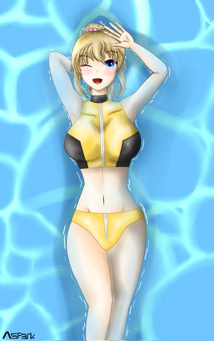 ただいまです、今日もお疲れ様でした✨ ひとまずはゆっくり休んで心身共にリフレッシュしたいと✨ #落書き 、「 #ガンダムビルドファイターズトライ 」の #ホシノ・フミナ 先輩✨ 水着姿がお気に入りなんです✨ オマケに再掲のフミナ先輩も✨