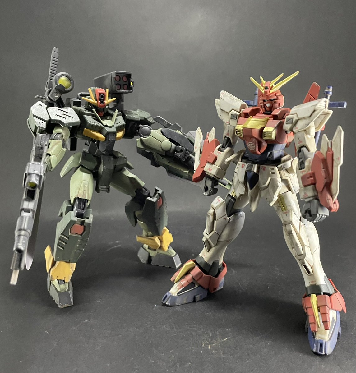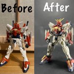 ブレイジングガンダム完成! 部分塗装とウェザリングで仕上げました😆 これでダブルオーコマンドクアンタと並べることが出来ました♫ #ブレイジングガンダム #ガンダムブレイカーバトローグ #ガンプラ好きと繋がりたい #ガンプラの画像貼るとRTされると聞いて