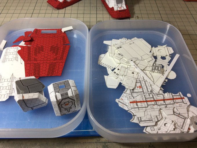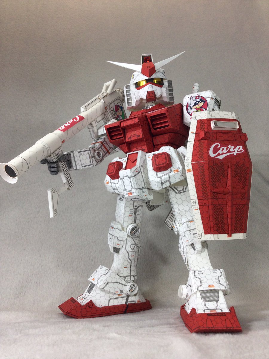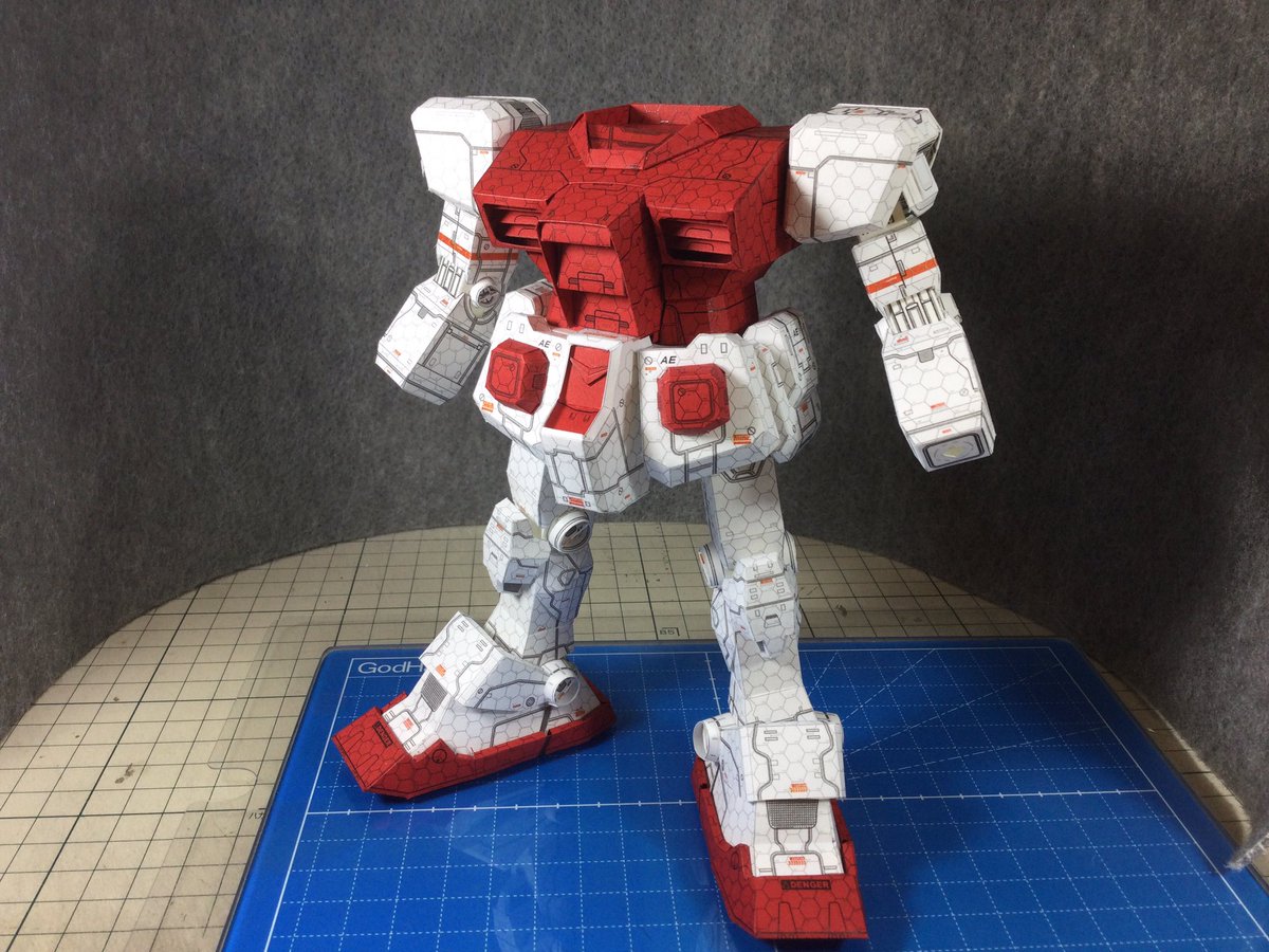 #ペーパークラフト #ガンダムペーパークラフト #ガンペパ 赤と白だけの機体、設定では拳も白ですが、先日開発した指の曲げ伸ばし拳を一調整して取り付けてみました。 ちなみにバックパックまで出来ています次は頭で本体の完成ですね。