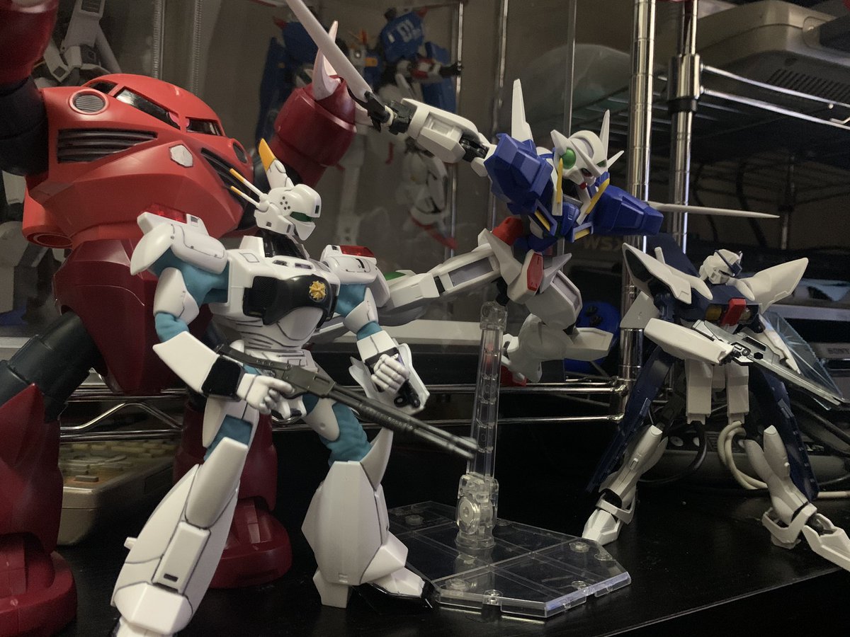 素組とか部分塗装、接着必須だったり改造してみたりと今月は割とプラモ消化してるな・・・ってエクシアはプラモじゃなかった 上手い人はもっと凝ったりするんだろうけどまぁ、ガンプラは自由だって事で・・・ってガンダムじゃないのもおるけど_(:3 」∠)_ #ガンプラ #ガンダムユニバース #パトレイバー