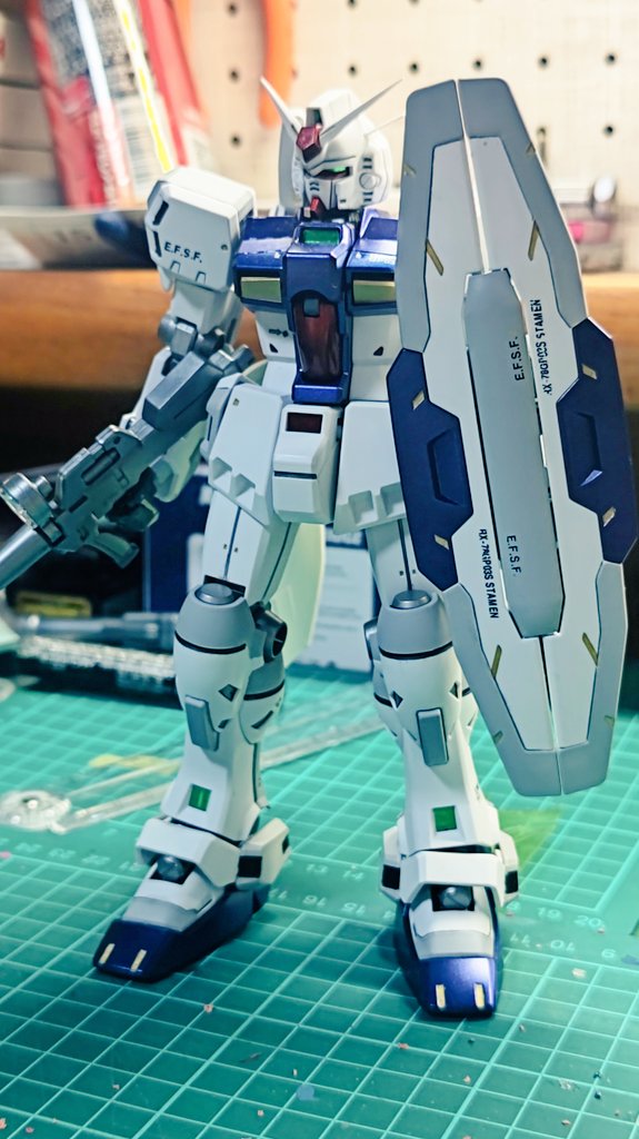皆さん、こんばんは✨ 昨日もいいね、リツイート、コメントありがとうございました😊 MGステイメン完成しました! 20年ぶりの再会という事ですごく楽しめました✨ 今回、オレンジ色のライトを使って1枚試しに撮ってみたんですが、渋い感じで好きですねぇ(笑) #ガンプラ #ガンダム試作3号機