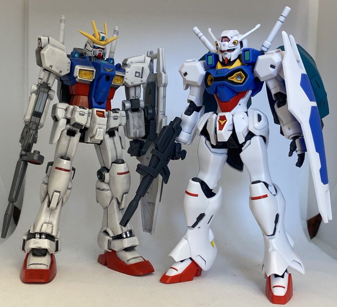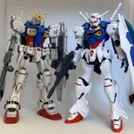 ガンダム開発試験0番機ってGP00なのでGP01と合わせてみた。01は頭無いジャンク品だったので違和感あるけどシールドや膝の赤ラインがGP系列っぽく感じる。0番機はやっぱ、ジオン系ぽさあるね♪ #ガンプラ #ガンダム開発試験0番機 #エンゲージゼロ #ガンダム試作1号機