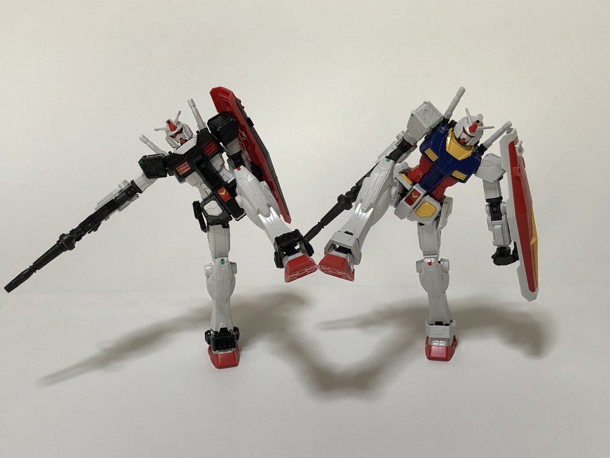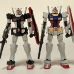 通常版と比較。 色違いだけでなく、アンクルガードがプロトタイプ風。 #ガンプラ #素組 #ガンプラの画像貼るとRTされると聞いて #ガンプラ好きな人と繋がりたい #RX78F00HMT #ガンダム高機動型 #ヨコハマガンダム #GFY