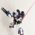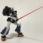 #ガンプラ好きな人と繋がりたい #ガンプラ #ガンダム高機動型 おはよう御座います、HGガンダム高機動型、完成しました!頭部バルカンのみ塗装しています! 浮かせてディスプレイするのが様になります!
