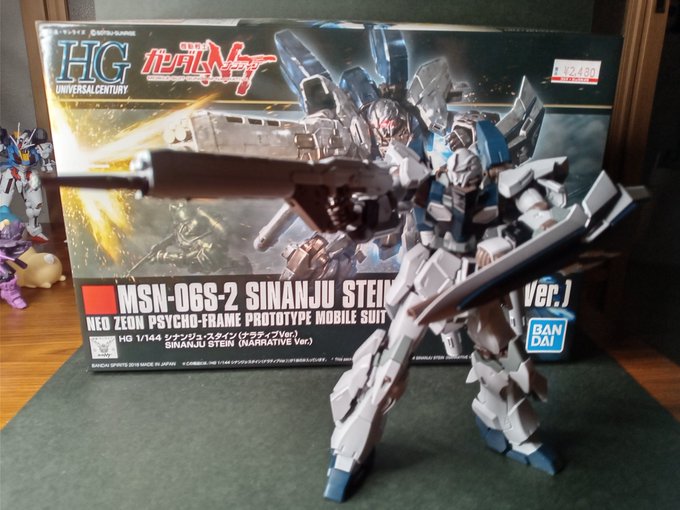 #ガンプラ #ガンプラ好きと繋がりたい #ガンプラの画像貼るとRTされると聞いて #ガンダムNT 今日の模型活動。 シナンジュ・スタインのパチ組が完成しました。😄 ビームライフルにバズーカやグレネードランチャーが装着できるようになっていて凝った作りになっています。😚
