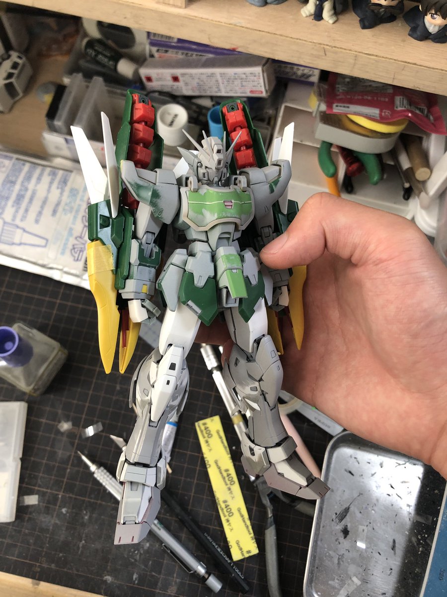 ついでにファラクトの前につくったHG1/144ガンダムデスサイズも撮影 キットに付属していたビームサイズのクリアパーツを、2つとも使いたい、2つの方が強いという信念から、ツインビームサイズをフラゲすることになった とさ #ガンプラ #ガンダムデスサイズ #ガンダムW