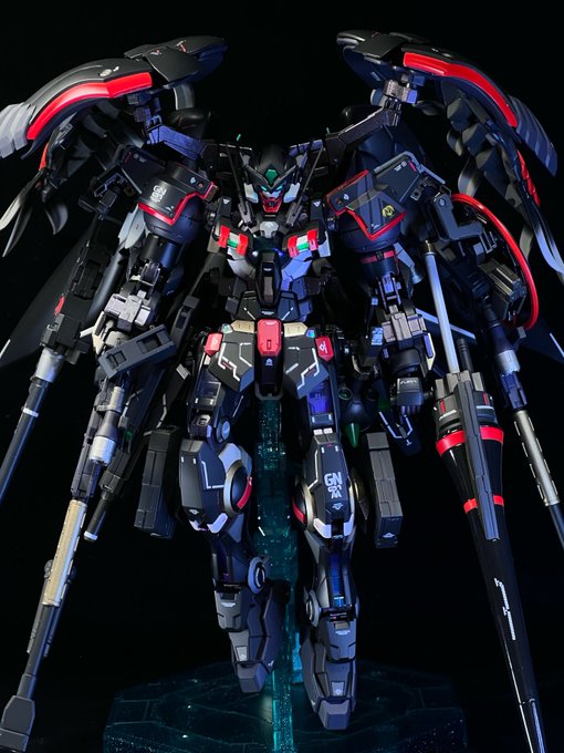 エアリアル作ってるふりして、ガンダムハルート最終決戦仕様完成です✌️😅 サバーニャと並べて飾れて感無量。バンダイ殿には感謝の言葉しかありません😭 おめでとうダブルオー15th! #ガンダム0015周年