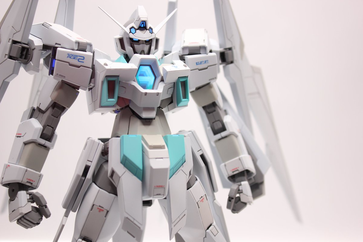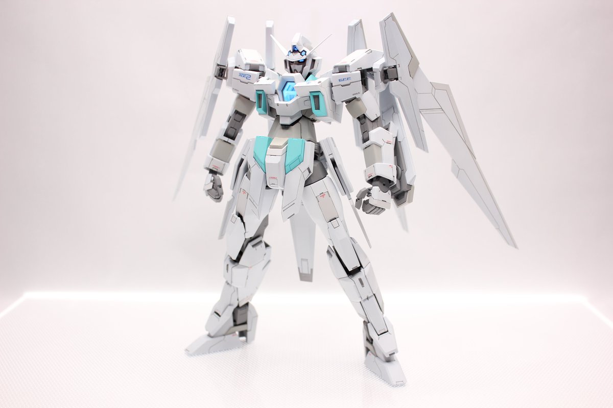 ようやく完成しました!MG.AGE2特務隊仕様 コア部分にインフィニティミラーを仕込んでUVライトを当てると永遠に奥に続いているように見えるという仕掛け付きです! #gunpla #ガンプラはどんな自由な発想で作ってもいいんだ #ガンダムAGE10th #ガンダムAGE #ガンプラ