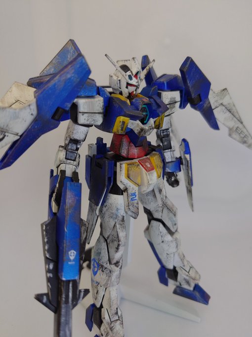 HG ガンダムAGE-2 ノーマル完成! ランナーごと塗装してみたくなって、急遽作ってました😁 激しい戦いの後って感じで、ガンガン汚しました😄 この方が、私の作品っぽいのかな😋 #ガンプラ #ガンダムAGE2 #ガンプラ好きと繋がりたい #ガンプラの画像貼るとRTされると聞いて