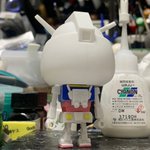 あらためまして「ガンプラくんDX」クローバー製デラックス仕様の完成画像になります!ダブルシールドとビームサーベルのちょい持ち加減がこだわりポイント!4つ作った中では1番強そう。流石ダイカストw #YSモナカ・EGコンペ2 #ガンプラくん #ガンプラ