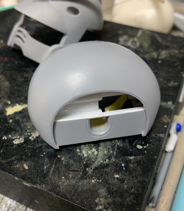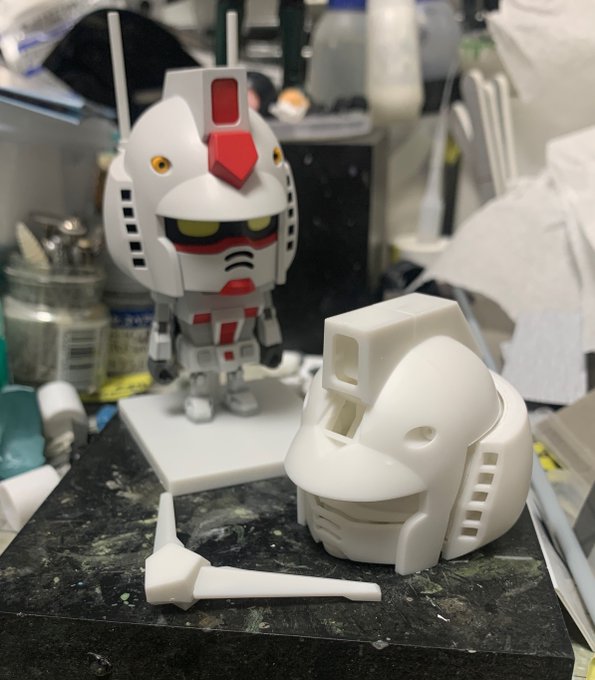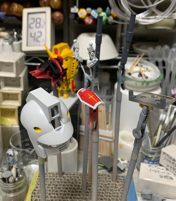 ガンプラくんは基本塗装まで完了したので一服がてら台座の支柱を太めのランナーで継ぎ目無く作り直した。根元のリブはランナータグから。接続の渋みは軸側ににポリランナーを仕込んだ。前回紹介した手首とは逆のパターン。 #ガンプラくん #ガンプラ twitter.com/monc_1974/stat…