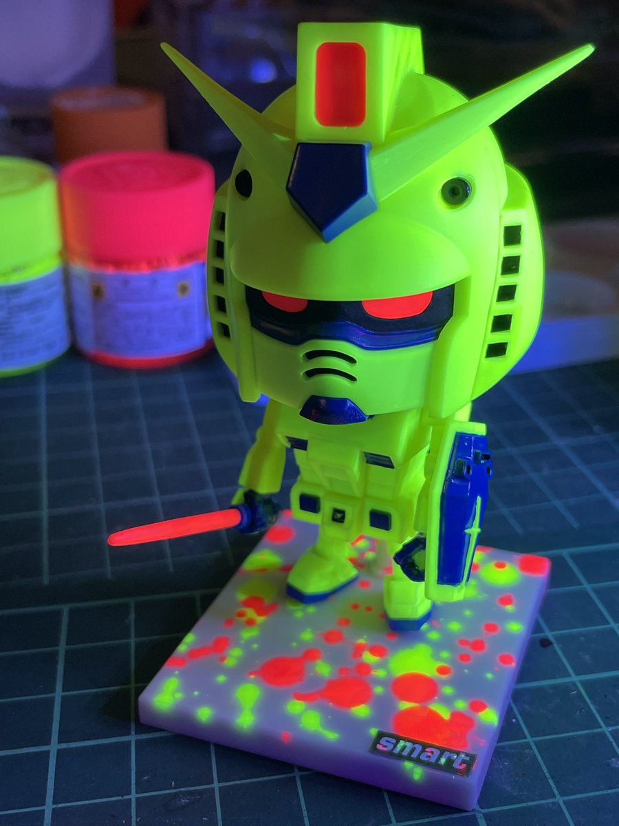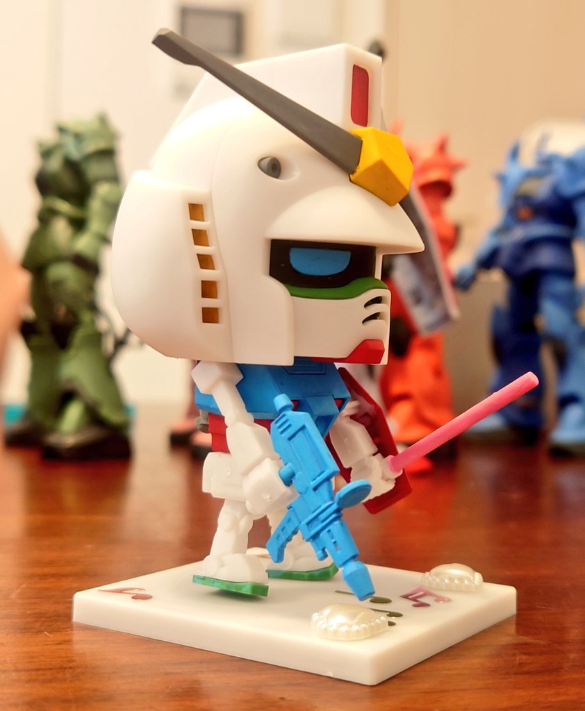 5歳の娘がガンプラくんを作りました! きちんと塗装計画どおりに仕上げられた!素晴らしい!! トイ感が溢れる彩色も見事ですが、台座のデコも可愛らしいと思ってます! #ガンプラ #ガンプラくんsmart