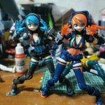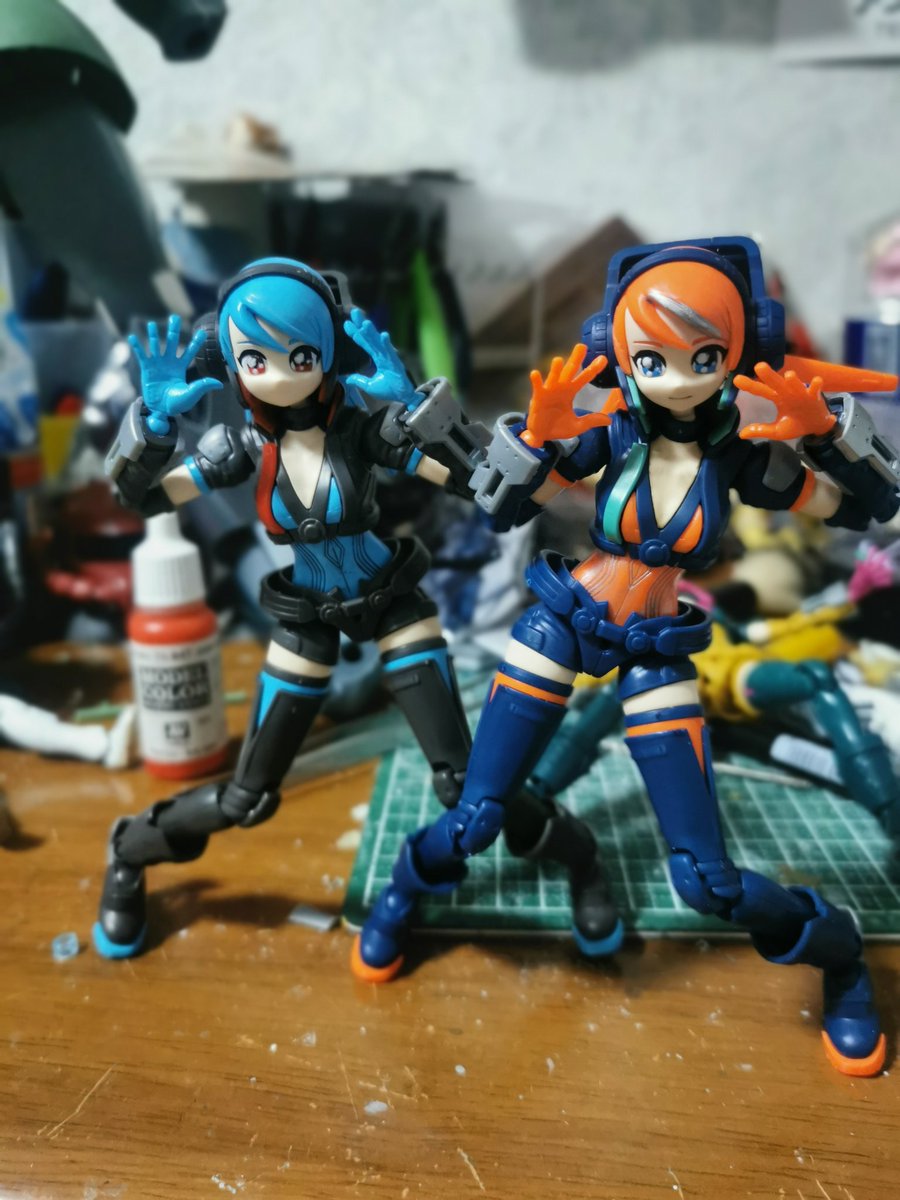 うちのコマンダーアリスとコマンダーアマツ見て! アマツ予想以上に可愛くなった! 目を塗るのは自分の目が死にそうだけどタミヤのハイグレード筆は使いやすいね! #ガールガンレディ #プラモ #ガンプラじゃないけど #バンダイ #タミヤハイグレード筆