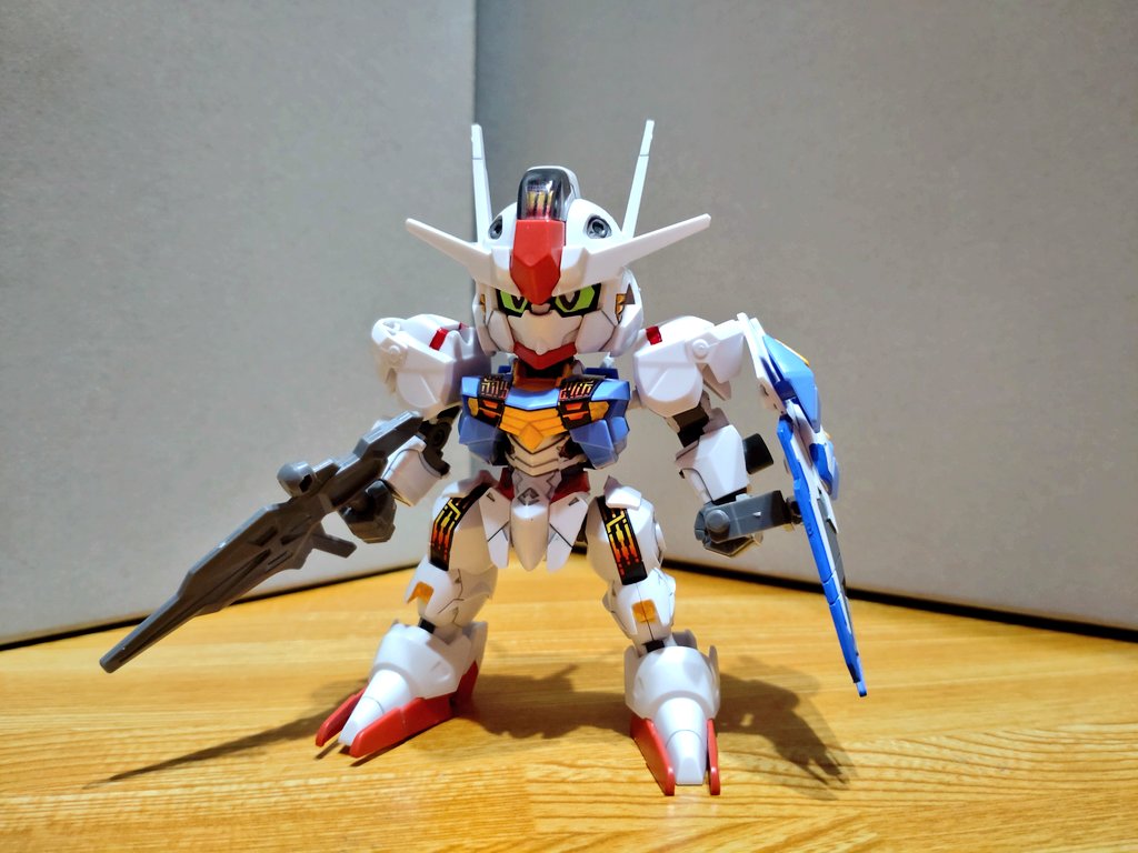 (1/4) #SDEX #ガンダムエアリアル 完成 今回、ツインアイに瞳を、HGのエスカッシャンを流用できるように前腕にジョイントを追加しました シールはクリアパーツまわりのもののみ使用してます (リプ続↓) #ガンプラ #ガンプラの画像貼るとRTされると #SDガンダム #俺SD作ってるぜ #水星の魔女 #G_Witch