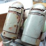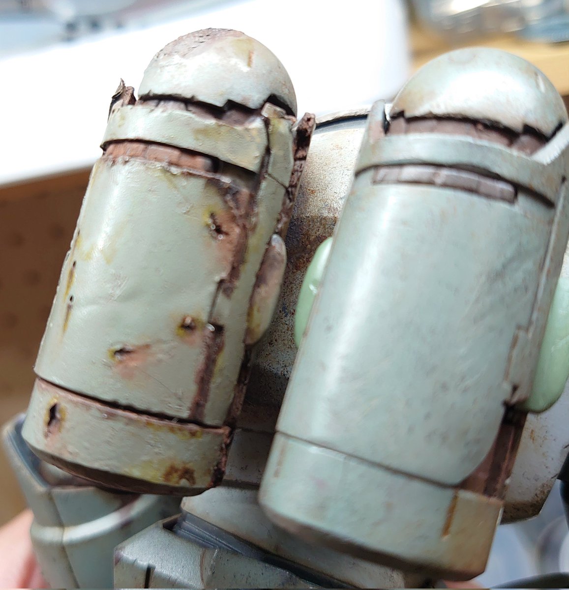 #ガンプラウェザリング #ケープ剥がし #ファレフォピグメント タミヤセメントの下地処理から錆サフ塗り。 塗装。 水中放置。 ワイヤーブラシで剥し。 エナメルエアブラシ。 ふき取り。 ウェザリングカラー。 ピグメント。 サビ塗料。 艶消し。 こんな感じで完成すな。