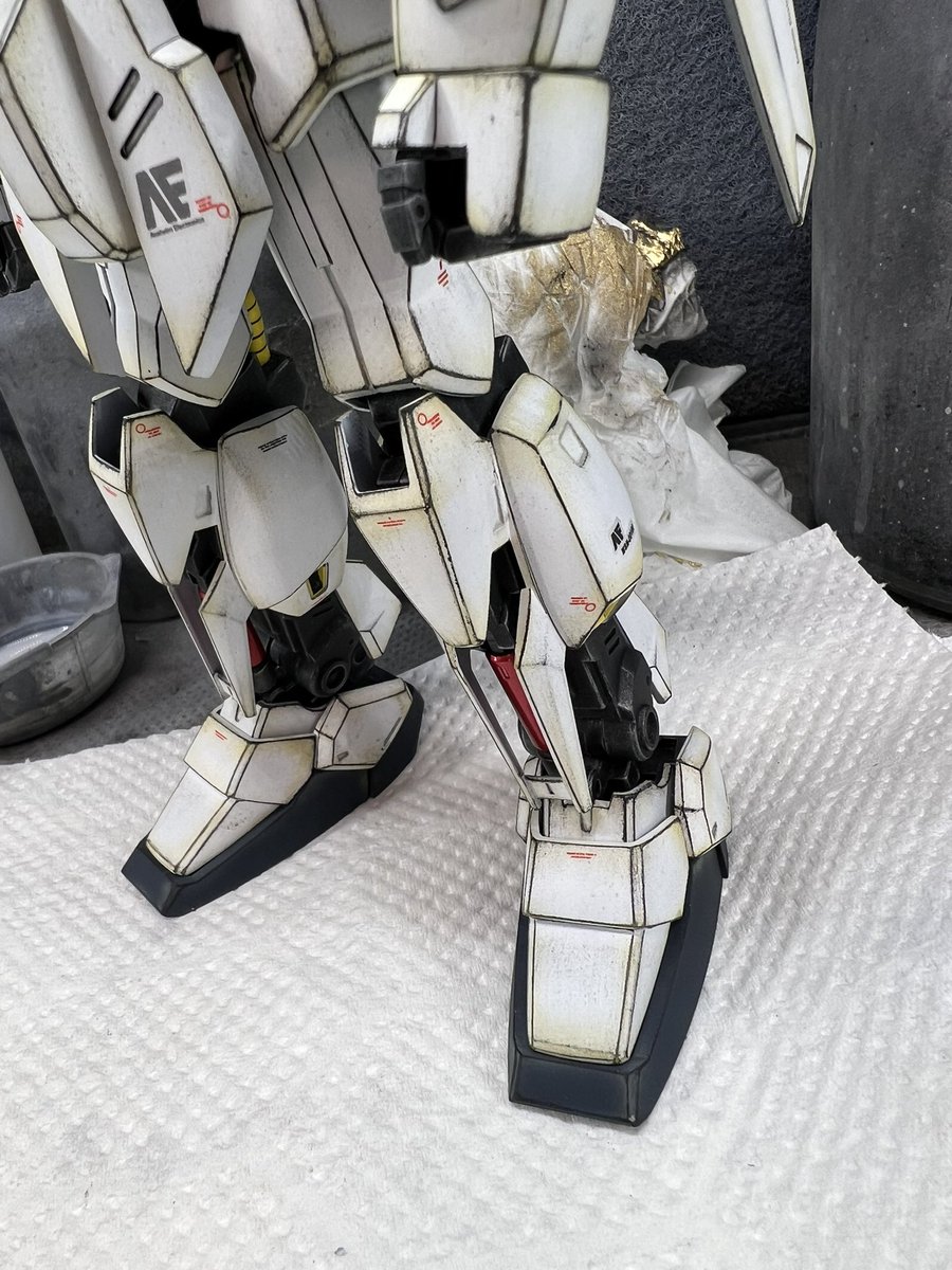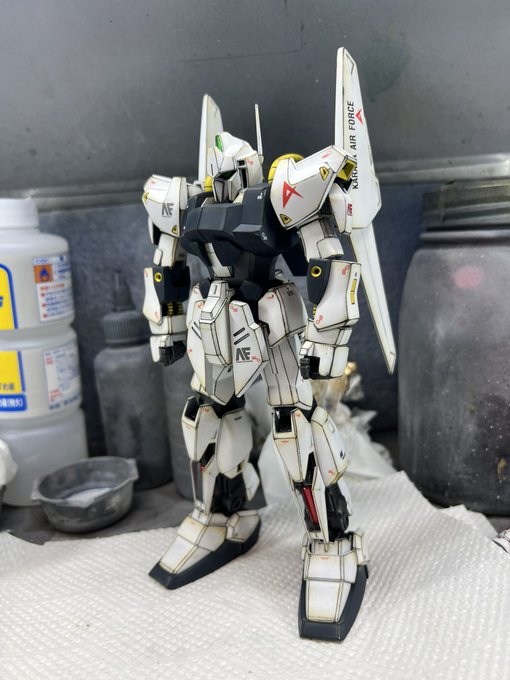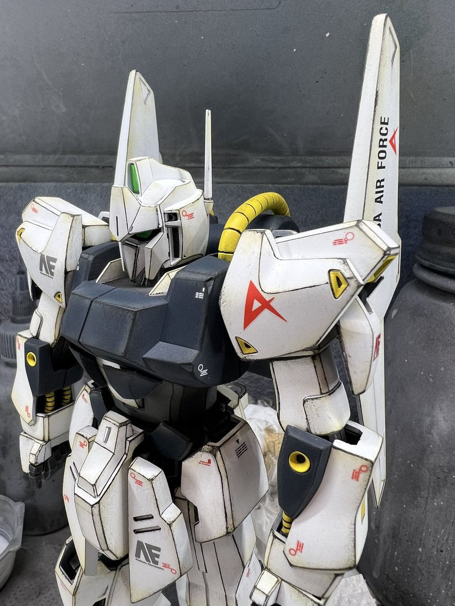 #ガンプラウェザリング #ケープ剥がし #スポンジチッピング 神のペンを久々持ち出してケープ剥がし後の剥がしすぎたとこや汚せてないところをライン引いたり、ちょんちょん点描画式で乗せていく感じ。やっぱ汚しはたんのしいなぁ〜♪