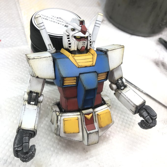 #ガンプラウェザリング 基本的にウェザリングはしないんで、やっても控えめ。これはボークスの3色限定のコンテスト部門に応募した際、塗装、ウェザリングも全てファレホでやりました。 #夜のフィギュア撮影会 お題 『フリー』過去、遅刻