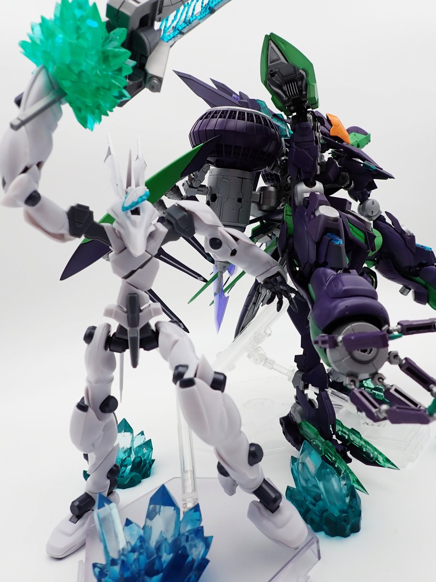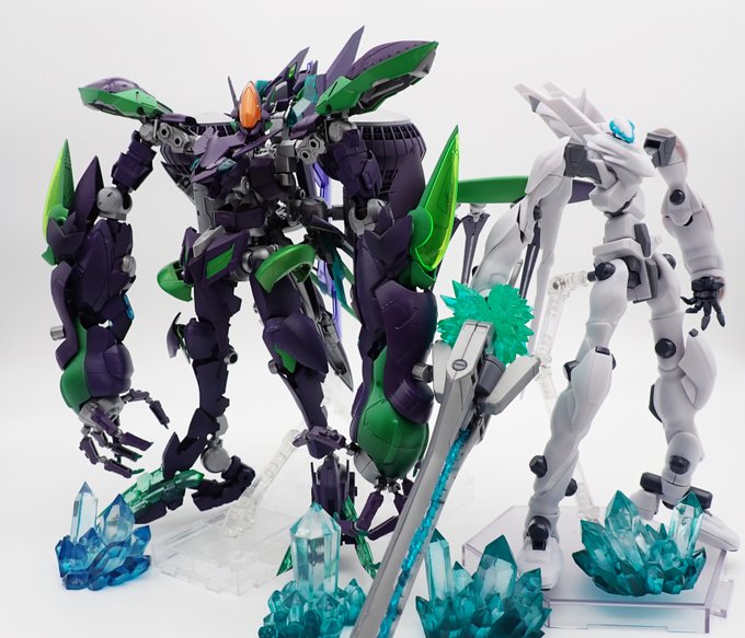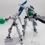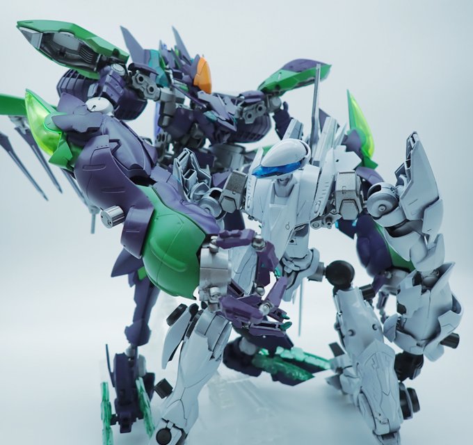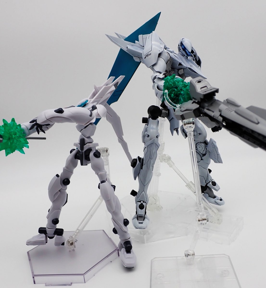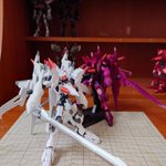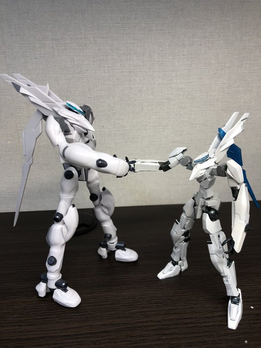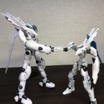 マークザインの素組み完了したので自作のほうと並べて。遠近法で同じくらいのサイズになってますが実寸ではガンプラのほうが1.3倍くらいのデカさな感じです。 #ファフナー #マークザイン #ガンプラファフナー化