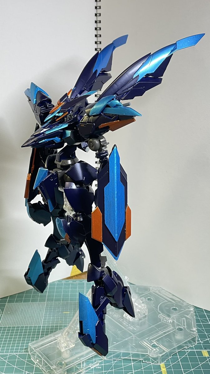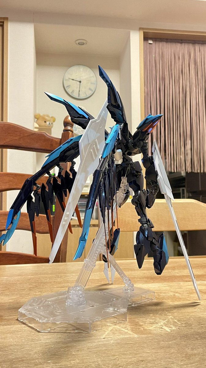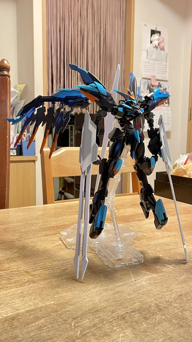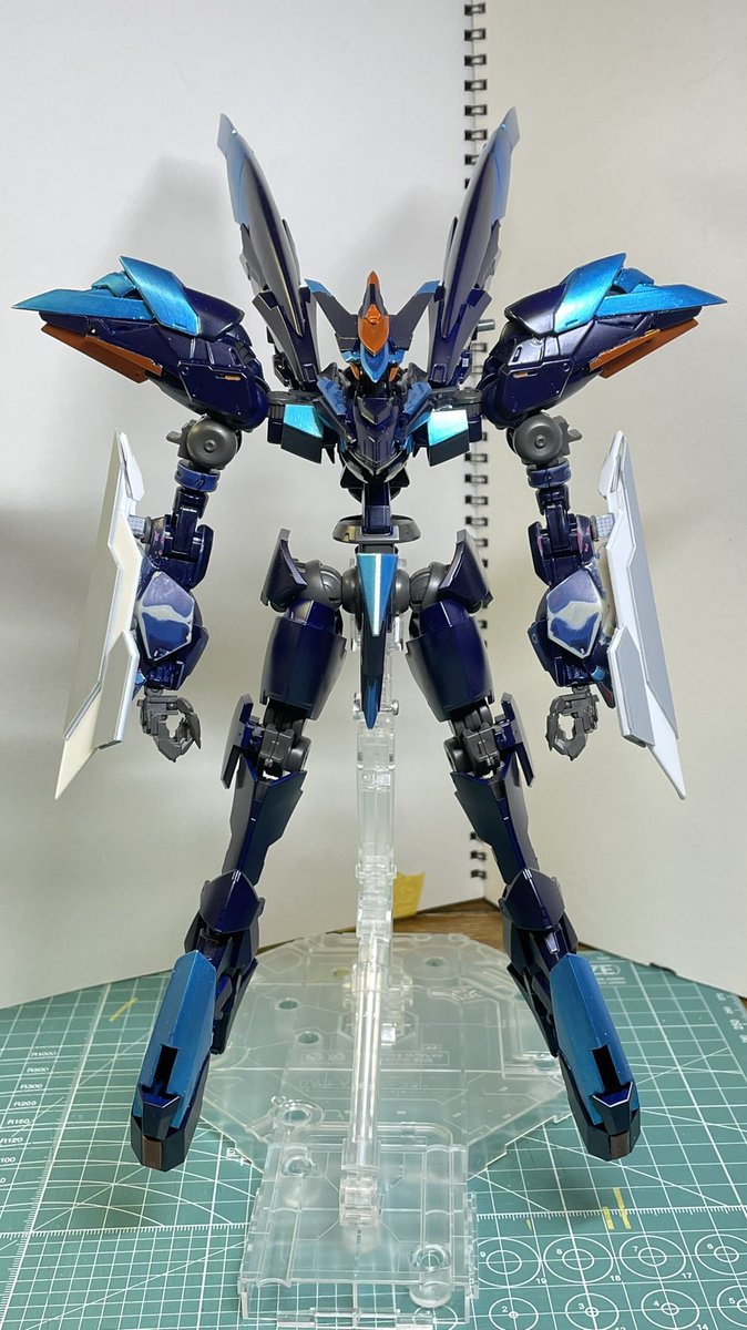 マークアレス 工作が全て終わりました まだ羽やスタビライザーとシールドの塗装が終わっていませんがバランス確認のため一度全て付けています やっぱりアレスは羽がついて完成されるデザインだと思います スタビライザーの大きさもいい感じです #ガンプラファフナー化