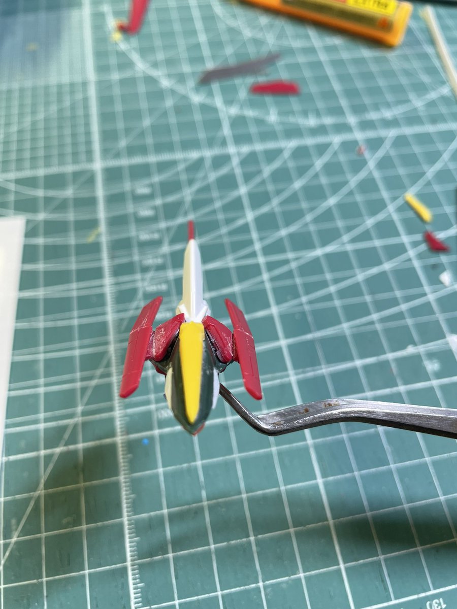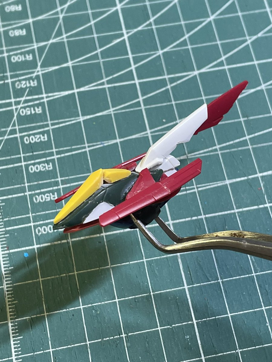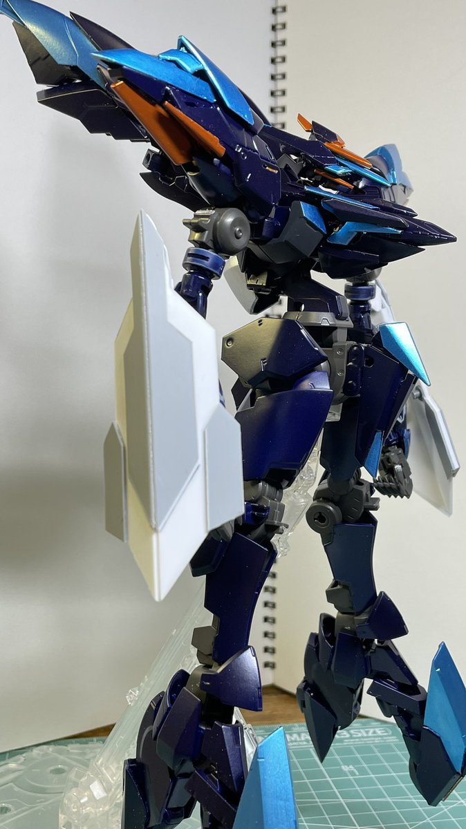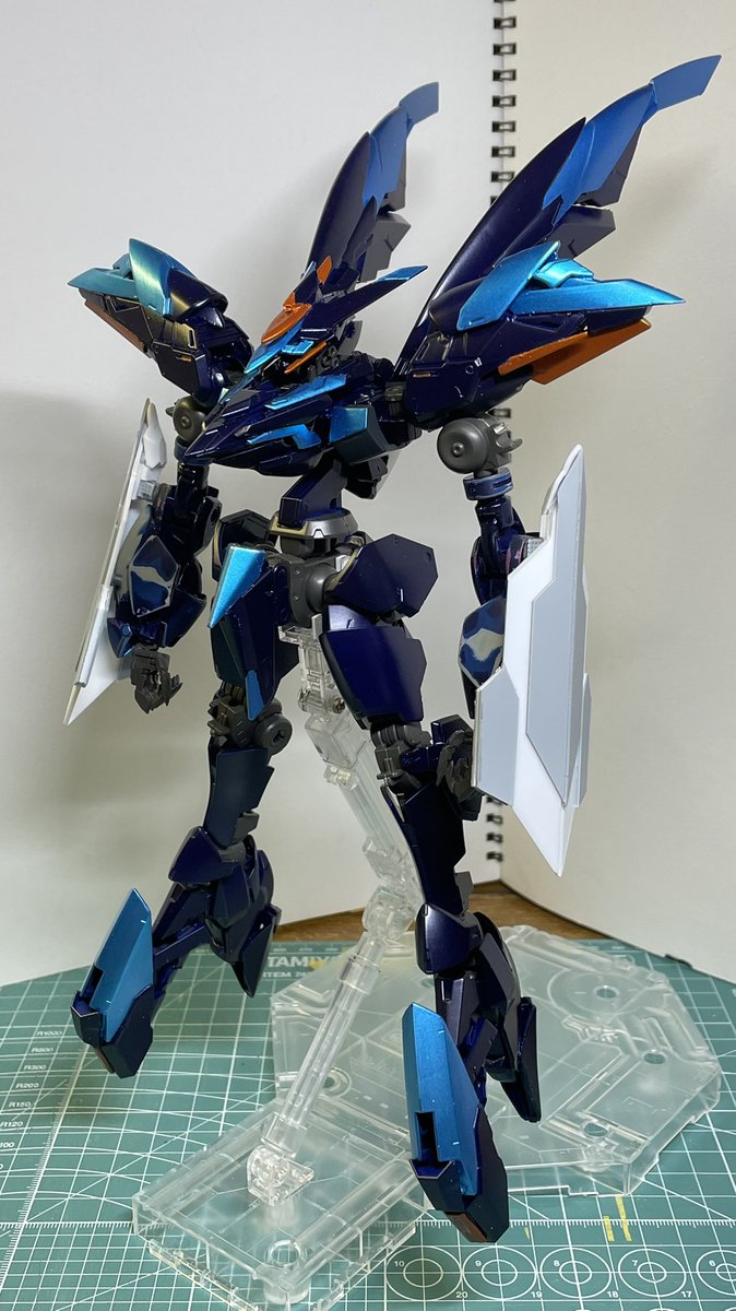 マークアレス 工作が全て終わりました まだ羽やスタビライザーとシールドの塗装が終わっていませんがバランス確認のため一度全て付けています やっぱりアレスは羽がついて完成されるデザインだと思います スタビライザーの大きさもいい感じです #ガンプラファフナー化