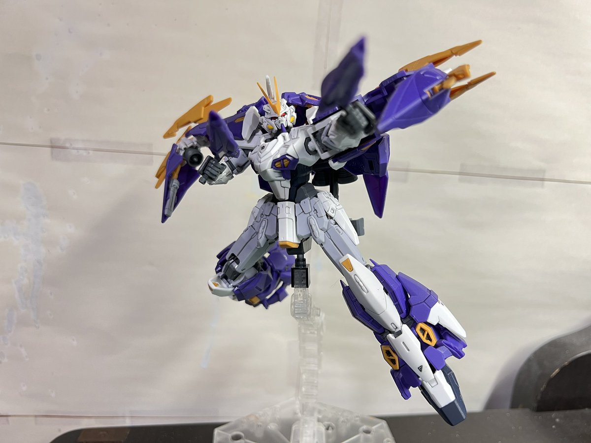 HGクシィーG完成〜 色分けもよく可動範囲がなんと言っても広い! 表情がつけやすくなっています ROBOT魂版を触ったことがあるのですが多分それより可動範囲は広いです 1部差し替えでフライト状態も再現可能となっています #ガンプラ #ガンプラプチレビュー