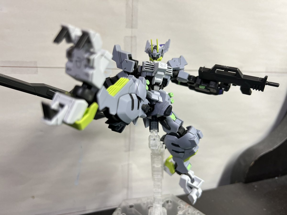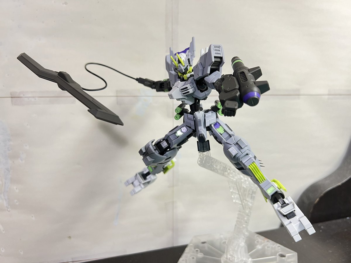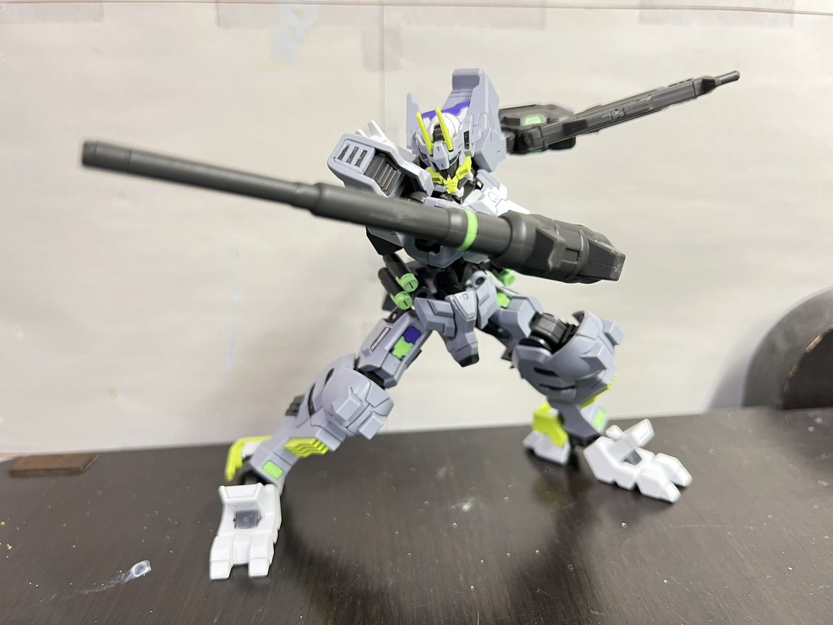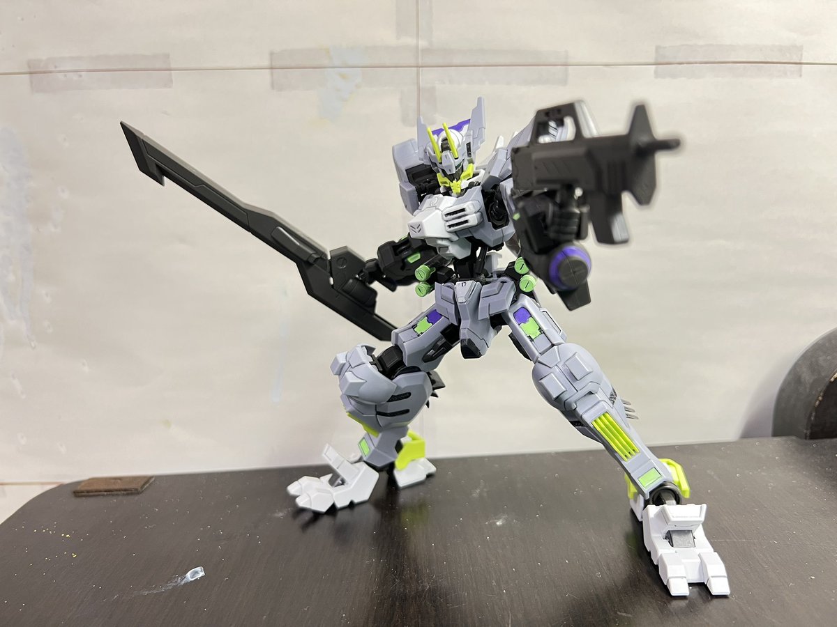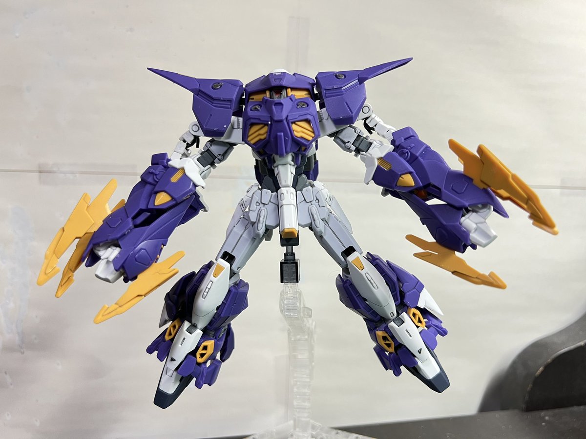 #ガンプラプチレビュー HGIBO ガンダムアスモデウス 完成です✨ 可動域は広いです❗️色分けはセンサー、ライトグリーン、パープル、ダークグレー、白が足りないです。グラン・トンファー、ギガント・ジャベリン、脚部クローは差し替えで展開状態に出来ます‼️とてもカッコイイです‼️