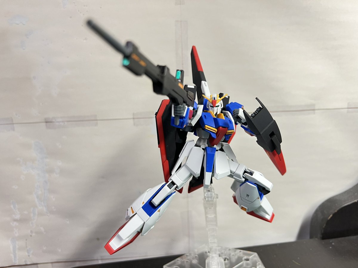 #ガンプラプチレビュー HGUC Zガンダム[U.C.0088] 完成です✨ 可動域は広いです❗️色分けはセンサー、オレンジ、黒、白が足りないです。リバイブ版Zの細部がZ+に近い形状になっています❗️バインダーの赤部もリバイブ版Zと違い色分けされています‼️これを一般で出せば良かったのに😇